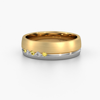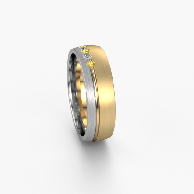 Was für eine perfekte Kombination zwei verschiedener Edelmetalle. Sie scheinen sich im traditionell Design dieses Rings zu verstärken! Unser Goldschiede würde sich freuen, einen einzigartigen Ring für Sie zu kreieren, ganz nach Ihren Wünschen. Jeder Ring, den wir anbieten, wird kunstvoll von Hand in unserem eigenen Atelier angefertigt. Das macht es möglich, dass wir Ihre Traditionell in die Realität umsetzen und Ihnen dabei helfen, Ihren eigenen, persönlichen Ring zu kreieren, der an Ihren Stil angepasst ist. Dieser traditionell Gold WH0323L25AM Damen Ehering ist mit rund Gelb Saphir besetzt, ±6 mm breit und hat ein mattes Finish. Passen Sie einfach Ihre Edelsteine und Farben mit unserem Online-Tool an. Unsere Schmuckdesigner erstellen eine 3D-Zeichnung Ihres Designs, damit Sie das Endergebnis sehen können. Unsere Goldschmiede werden anschließend Ihre Ehering nach alter Handwerkskunst von Hand anfertigen. Unser Ziel ist es, den Ehering Ihre Träume anzufertigen. Ein einzigartiger Ehering, der perfekt zu Ihrem Stil passt!Haben Sie noch andere Wünsche für Ihre Ehering und können Sie dieser hier nicht zurückfinden? Bitte kontaktieren Sie unsere Schmuckdesigners! Wir können zum Beispiel einen Ring mattieren und den Ring breiter oder schmaler für Sie machen. Und haben Sie selbst einen Vorschlag für einen traditionell Eheringe? Unsere Designers werden gern herausgefordert, um Ihrem Ring zu Ihren Vorstellungen zu gestalten!Mit unserer modernen Technik, kombiniert mit Handwerk, können wir Schmuckstücke von höchster Qualität mit größter Sorgfalt für Sie entwerfen und anpassen. Unsere Eheringe sind immer um 30 Prozent günstiger als bei anderen Juwelieren. Wir fertigen Eheringe auf Bestellung, also müssen wir keine großen Lager unterhalten.Um es einfacher zu machen, bieten wir eine kostenlose 30-tägige Rücksendung.