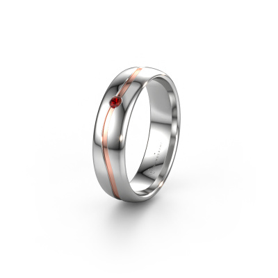 Was für eine perfekte Kombination zwei verschiedener Edelmetalle. Sie scheinen sich im moderne Design dieses Rings zu verstärken! Unser Goldschiede würde sich freuen, einen einzigartigen Ring für Sie zu kreieren, ganz nach Ihren Wünschen. Jeder Ring, den wir anbieten, wird kunstvoll von Hand in unserem eigenen Atelier angefertigt. Das macht es möglich, dass wir Ihre Modern in die Realität umsetzen und Ihnen dabei helfen, Ihren eigenen, persönlichen Ring zu kreieren, der an Ihren Stil angepasst ist. Dieser moderne Weißgold WH0905L35X Damen Ehering ist mit rund Granat besetzt, ±5 mm breit und hat ein blinkendes Finish.