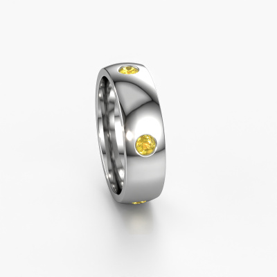 Ein wirklich stylischer, 14 Karat Weißgold exklusive Ehering! Dieser exquisite Damen Ehering, wie oben gezeigt, ist mit rund Gelb Saphir besetzt. Unsere Goldschmiede stellen jeden Weißgold Ehering in unserem eigenen Atelier her und aus diesem Grund werden die Gelb Saphir mit höchster Präzision gesetzt. Dadurch wird das Licht aus jedem Winkel gleichmäßig vom Gelb Saphir reflektiert. Die Breite dieses exklusive WH0104L26BP Ehering beträgt ±6 mm und er hat ein blinkendes Finish. Gold steht für Liebe und deshalb liebt unser Goldschmied das Design Ihre exklusive Ehering. Wir sind ein stolzes Mitglied des Responsible Jewellery Council. Das heißt, wir verwenden nur ehrliches Gold. Darauf sind wir natürlich sehr stolz. Es ist auch möglich, eigenes Gold für das Design Ihre Ehering zu verwenden. Jedes Schmuckstück wird von Hand in unserem eigenen Atelier angefertigt, so dass wir diese Option anbieten können. Das gibt Ihnen die Möglichkeit, Ihrem Ring eine zusätzliche persönliche Note hinzuzufügen. Jeder Ring hat seine eigene Geschichte.Sie können sich übrigens auch inspirieren lassen von diesem Eheringe und den Ringen weiter nach Ihrem Geschmack anpassen. Möchten Sie zum Beispiel lieber einen breiteren oder schmaleren Ring oder einen mattierten oder glänzenden Ring? Alles ist möglich. Auch wenn Sie selbst eine Idee haben für einzigartigen Eheringe, oder vielleicht haben Sie selbst irgendwo sonst einen schönen Set Eheringen gefunden: kein Problem! Sie können uns gern anrufen, unsere Designer besprechen gern alle Möglichkeiten mit Ihnen!Da wir unseren eigenen Schmuckstücken entwerfen und liefern, können wir Ihnen Eheringe zu einem Preis anbieten, den Sie nirgendwo anders finden. Ihre Eheringe werden auf Bestellung angefertigt, wodurch kein überschüssiges Material anfällt. So können wir Ihnen ein gutes Angebot zum besten Preis machen.Um es einfacher zu machen, bieten wir eine kostenlose 30-tägige Rücksendung.