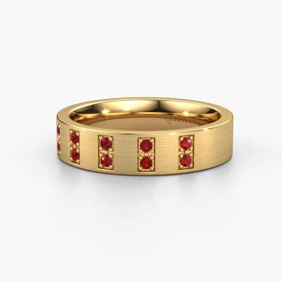 Wenn Sie nach einem exklusiven, exklusive Ehering mit einem exquisiten Look suchen, ist dieser Ring perfekt für Sie. Weil er an Ihren Stil angepasst werden kann, wird dieser Ehering zu einem einzigartigen, exklusiven Schmuckstück verarbeitet. Dieser exklusive Damen Ehering ist eine perfekte Kombination aus alter Handwerkskunst, Liebe, Leidenschaft und modernsten Techniken. Dieser exklusive WH2013L Gold Ehering ist mit Rubin 1.5 mm besetzt, ±5 mm breit und hat ein mattes Finish. Sie können in unserem Online-Tool eine Kombination aus Edelmetallen wählen. Alles ist möglich! Es ist gut, sich die Eigenschaften der verschiedenen Edelmetalle anzusehen. Gold und Silber sind zum Beispiel weichere Metalle. Die Karat werden durch die Menge der hinzugefügten zusätzlichen Metalle bestimmt. Wenn der Goldschmied nicht viel hinzufügt, sind die Karat höher und der Ehering wird weicher. Wenn er mehr Metalle hinzufügt, hat das Schmuckstück einen geringeren Wert in Karat. Ein weicheres Edelmetall kann trotzdem für Ihre exklusive Ehering verwendet werden! Wenn Sie ein Edelmetall bevorzugen, das ein Leben lang halten wird, empfehlen wir Platin. Es ist das robusteste und langlebigste Metall, dass unser Goldschmied verwendet.Dieser Ehering kann auch als Inspirationsquelle dienen. Möchtest du den Ring matt oder glänzend (ohne Aufpreis) haben, oder lieber breiter oder schmaler? Alles ist möglich. Da es unzählige Variationen gibt, können wir nicht alles auf unserer Website zeigen. Hast du eine Idee für schöne Eheringe oder irgendwo anders ein schönes Set Trauringe gesehen? Kontaktiere uns gerne, unsere Designer stehen bereit, um dir zu helfen.Nach Erhalt Ihrer Bestellung beginnen unsere Goldschmiede mit Leidenschaft den kreativen Prozess und fertigen Ihre Eheringe in unserem eigenen Studio. Da wir keine großen Lager haben, werden diese Kosten nicht an Sie weitergegeben. Unsere Preisgestaltung ist der Beweis dafür! Wir bieten Schmuck zum niedrigsten Preis, garantiert.Um es einfacher zu machen, bieten wir eine kostenlose 30-tägige Rücksendung.