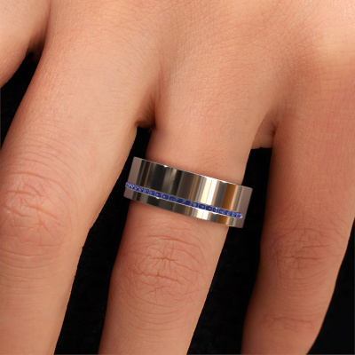 Ein wirklich stylischer, 14 Karat Weißgold moderne Ehering! Dieser exquisite Damen Ehering, wie oben gezeigt, ist mit rund Saphir besetzt. Unsere Goldschmiede stellen jeden Weißgold Ehering in unserem eigenen Atelier her und aus diesem Grund werden die Saphir mit höchster Präzision gesetzt. Dadurch wird das Licht aus jedem Winkel gleichmäßig vom Saphir reflektiert. Die Breite dieses moderne WH0143L17BP Ehering beträgt ±7 mm und er hat ein blinkendes Finish. Der Schmuckdesigner, Mitglied eines spezialisierten Teams, erstellt ein grafisches 3D-Design Ihres Ehering. Wenn es Ihnen gefällt, können Sie auch einen Dummy Ring bestellen, so dass Sie ihn anprobieren und Ihre Ehering vor der Anfertigung sehen können. Anschließend wird unser Goldschmied in unserem eigenen Studio mit großer Sorgfalt Ihren einzigartigen Ring kreieren. Eine sorgfältige Arbeit, denn sowohl das Anfertigen, als auch das Finish Ihre Ehering erfordern ein scharfes Auge. Und genau das macht unser Handwerk so besonders. Ihr einzigartiger Ehering ist das Ergebnis echter leidenschaftlicher Handwerkskunst!Sie können sich gern inspirieren lassen von unseren Modellen. Sie können diesen Ehering auch gern weiter anpassen: breiter oder schmaler? Glänzend oder mattiert? Kein Problem! Auch wenn Sie selbst Ideen haben für einmaligen Eheringe, helfen unsere Schmuckdesigner Ihnen gern weiter, um Ihren Traumring zu fertigen. Sie können uns gern kontaktieren!Nach Erhalt Ihrer Bestellung beginnen unsere Goldschmiede mit Leidenschaft den kreativen Prozess und fertigen Ihre Eheringe in unserem eigenen Studio. Da wir keine großen Lager haben, werden diese Kosten nicht an Sie weitergegeben. Unsere Preisgestaltung ist der Beweis dafür! Wir bieten Schmuck zum niedrigsten Preis, garantiert.Um es einfacher zu machen, bieten wir eine kostenlose 30-tägige Rücksendung.