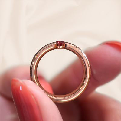 Eine außergewöhnlicher besondere Ehering! So einzigartig wie Ihre Beziehung! Kein Mensch ist wie der andere und deshalb wollen Sie auch einzigartige Ehering. Dieser Luxus Damen WHR0575L Ehering wird von unseren Schmuckdesignern angefertigt und von unserem Goldschiede in Handarbeit gefertigt. In diesem Verfahren verwenden wir pure Handwerkskunst in Kombination mit den neuesten Techniken, um das beste Ergebnis zu erzielen. Unser Goldschiede strebt nach absoluter Perfektion. Ein einzigartiger, handgefertigter Ehering zum Gedenken an Ihren großen Tag! Dieser Luxus WHR0575L Roségold Ehering ist mit Rubin besetzt, ±7 mm breit und hat ein blinkendes Finish.