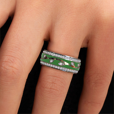 Wussten Sie, dass mit einem Emaille-Design verzierte Juwelen kleine Kunstwerke sind? Ein Damen Ehering mit Emaille-Design wird durch Hinzugeben von Glas und Pigment zu einem Edelmetall hergestellt. Der polierte, transparente Effekt, der dem Damen Ehering dadurch gegeben wird, lässt ihn wirklich erstrahlen. Eine schöne Möglichkeit, Ihren Ehering eine persönliche Note zu verleihen. Vor allem, weil es eine große Auswahl an Farben gibt! Unsere Emaille Ehering, inklusive Siegelringe, werden von unserem erfahrenen Goldschiede in unserem eigenen Atelier angefertigt. So lässt sich der Vintage Ehering perfekt gestalten. Ein perfekt gestalteter, einzigartiger Ehering ist genau das, wonach unser erfahrener Goldschiede strebt. Die Breite dieses Platin WH3051L28B Ehering beträgt ±8 mm.