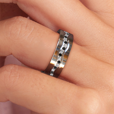Der exklusive Eternity Trauring ist ein Ring mit einer schönen, symbolischen Bedeutung. Weil es keinen Anfang und kein Ende der Linie kleinerer Schwarze Diamanten zu geben scheint. Eine schöne Art, um Ihre ewige Liebe auszudrücken. Ein Ring, der bis zum Ende aller Zeiten getragen wird, als Symbol für Ihre Vereinigung. Dieser Welle Details WH0803L16AP Damen Platin Trauring hat eine Breite von ±6 mm und ist mit Schwarze Diamanten 0.484 crt besetzt. Der oben abgebildete, massive Ring ist ein Trauring mit glatter Oberfläche. Wählen Sie einfach ein Edelmetall, das zu Ihrem Stil passt. Ehrliches Platin, Gold oder Silber. Wir können Ihnen einen Ring anbieten, der vollkommen atemberaubend ist. Es ist auch möglich, dass unser Goldschmied Ihr eigenes Gold für Ihre Trauring verwendet.Haben Sie noch andere Wünsche für Ihre Trauring und können Sie dieser hier nicht zurückfinden? Bitte kontaktieren Sie unsere Schmuckdesigners! Wir können zum Beispiel einen Ring mattieren und den Ring breiter oder schmaler für Sie machen. Und haben Sie selbst einen Vorschlag für einen exklusive Trauringe? Unsere Designers werden gern herausgefordert, um Ihrem Ring zu Ihren Vorstellungen zu gestalten!Nachdem Sie Ihre Bestellung aufgegeben haben, beginnen unsere Goldschmiede mit dem kreativen Prozess der Herstellung Ihre Trauringe. Wir haben keine Lager. Das ist vorteilhaft, da diese Kosten nicht an Sie weitergegeben werden. Daher sind wir in der Lage, Schmuck zu außergewöhnlich niedrigen Preisen anzubieten.Um es einfacher zu machen, bieten wir eine kostenlose 30-tägige Rücksendung.