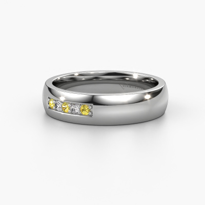 Um Ihren Damen Ehering in unserem Atelier anzufertigen, verwenden wir modernste Techniken, kombiniert mit alter Handwerkskunst. Das Endergebnis ist dieser moderne WH0111L25BP Ehering, der von unseren Goldschmieden in Handarbeit gefertigt wird. Ein Ring, der uns mit Stolz erfüllt. Dieser Weißgold WH0111L25BP Damen Ehering mit flach-gewölbt Profil hat eine Breite von ±5 mm und ein blinkendes Finish mit Gelb Saphir. Einen Ehering wählt man nicht aus einer Laune heraus. Am Ende möchten Sie nämlich einen Ring, der vollständig Ihrem Stil und Ihren Vorlieben entspricht. Ein Spiegelbild Ihrer Liebe und Beziehung. Ein Ring, der ein Leben lang hält. Ein Symbol für alles, was Sie verbindet. Ihren Traum-Ring zu kreieren ist unsere Leidenschaft. Dies wird kunstvoll von Hand in unserem eigenen Studio gemacht, so dass wir Ihren Ring perfektionieren können. Der lohnendste Job der Welt!Sie können sich gern inspirieren lassen von unseren Modellen. Sie können diesen Ehering auch gern weiter anpassen: breiter oder schmaler? Glänzend oder mattiert? Kein Problem! Auch wenn Sie selbst Ideen haben für einmaligen Eheringe, helfen unsere Schmuckdesigner Ihnen gern weiter, um Ihren Traumring zu fertigen. Sie können uns gern kontaktieren!Mit unserer modernen Technik, kombiniert mit Handwerk, können wir Schmuckstücke von höchster Qualität mit größter Sorgfalt für Sie entwerfen und anpassen. Unsere Eheringe sind immer um 30 Prozent günstiger als bei anderen Juwelieren. Wir fertigen Eheringe auf Bestellung, also müssen wir keine großen Lager unterhalten.Um es einfacher zu machen, bieten wir eine kostenlose 30-tägige Rücksendung.
