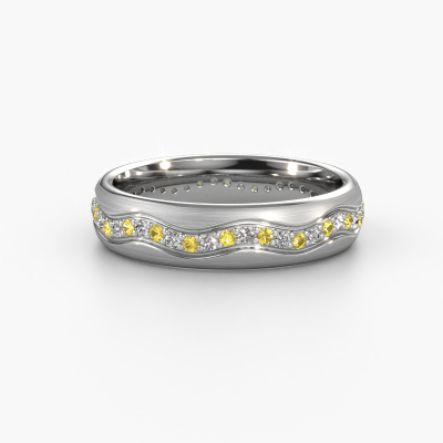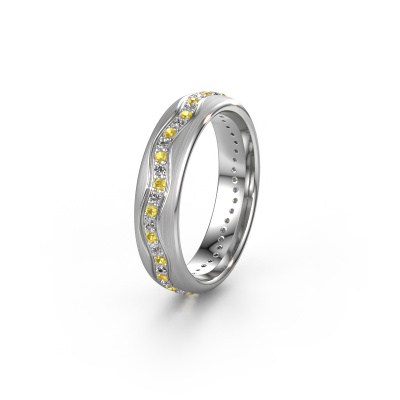 Eine außergewöhnlicher Eternity Ehering! So einzigartig wie Ihre Beziehung! Kein Mensch ist wie der andere und deshalb wollen Sie auch einzigartige Ehering. Dieser moderne Damen WH0803L35BM Ehering wird von unseren Schmuckdesignern angefertigt und von unserem Goldschiede in Handarbeit gefertigt. In diesem Verfahren verwenden wir pure Handwerkskunst in Kombination mit den neuesten Techniken, um das beste Ergebnis zu erzielen. Unser Goldschiede strebt nach absoluter Perfektion. Ein einzigartiger, handgefertigter Ehering zum Gedenken an Ihren großen Tag! Dieser moderne WH0803L35BM Weißgold Ehering ist mit Gelb Saphir besetzt, ±5 mm breit und hat ein blinkendes Finish. Sie können in unserem Online-Tool eine Kombination aus Edelmetallen wählen. Alles ist möglich! Es ist gut, sich die Eigenschaften der verschiedenen Edelmetalle anzusehen. Gold und Silber sind zum Beispiel weichere Metalle. Die Karat werden durch die Menge der hinzugefügten zusätzlichen Metalle bestimmt. Wenn der Goldschmied nicht viel hinzufügt, sind die Karat höher und der Ehering wird weicher. Wenn er mehr Metalle hinzufügt, hat das Schmuckstück einen geringeren Wert in Karat. Ein weicheres Edelmetall kann trotzdem für Ihre moderne Ehering verwendet werden! Wenn Sie ein Edelmetall bevorzugen, das ein Leben lang halten wird, empfehlen wir Platin. Es ist das robusteste und langlebigste Metall, dass unser Goldschmied verwendet.Dieser Ehering kann auch als Inspirationsquelle dienen. Möchtest du den Ring matt oder glänzend (ohne Aufpreis) haben, oder lieber breiter oder schmaler? Alles ist möglich. Da es unzählige Variationen gibt, können wir nicht alles auf unserer Website zeigen. Hast du eine Idee für schöne Eheringe oder irgendwo anders ein schönes Set Trauringe gesehen? Kontaktiere uns gerne, unsere Designer stehen bereit, um dir zu helfen.Nachdem Sie Ihre Bestellung aufgegeben haben, beginnen unsere Goldschmiede mit dem kreativen Prozess der Herstellung Ihre Eheringe. Wir haben keine Lager. Das ist vorteilhaft, da diese Kosten nicht an Sie weitergegeben werden. Daher sind wir in der Lage, Schmuck zu außergewöhnlich niedrigen Preisen anzubieten.Um es einfacher zu machen, bieten wir eine kostenlose 30-tägige Rücksendung.