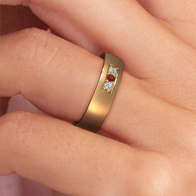 Um Ihren Damen Ehering in unserem Atelier anzufertigen, verwenden wir modernste Techniken, kombiniert mit alter Handwerkskunst. Das Endergebnis ist dieser moderne WH0110L25AM Ehering, der von unseren Goldschmieden in Handarbeit gefertigt wird. Ein Ring, der uns mit Stolz erfüllt. Dieser Gold WH0110L25AM Damen Ehering mit flach-gewölbt Profil hat eine Breite von ±5 mm und ein mattiert-glänzende Finish mit Rubin. Sie können in unserem Online-Tool eine Kombination aus Edelmetallen wählen. Alles ist möglich! Es ist gut, sich die Eigenschaften der verschiedenen Edelmetalle anzusehen. Gold und Silber sind zum Beispiel weichere Metalle. Die Karat werden durch die Menge der hinzugefügten zusätzlichen Metalle bestimmt. Wenn der Goldschmied nicht viel hinzufügt, sind die Karat höher und der Ehering wird weicher. Wenn er mehr Metalle hinzufügt, hat das Schmuckstück einen geringeren Wert in Karat. Ein weicheres Edelmetall kann trotzdem für Ihre moderne Ehering verwendet werden! Wenn Sie ein Edelmetall bevorzugen, das ein Leben lang halten wird, empfehlen wir Platin. Es ist das robusteste und langlebigste Metall, dass unser Goldschmied verwendet.Haben Sie noch spezifische Wünsche? Zum Beispiel ein glänzender oder mattierter Ring (kostenlos)? Breiter oder schmaler? Die Möglichkeiten für diesen Ehering sind unendlich. Sie können gern unsere Schmuckdesigner kontaktieren damit Sie Ihren Ring nach Ihrem Geschmack weiter anpassen können. Auch wenn Sie Ideen haben für den Entwurf von Ihre eigenen Eheringe oder einen bestimmten Ring im Laden gesehen haben, können Sie dieser immer mit unserem Designers überlegen. Unsere Designers werden gern herausgefordert genau diesen Ring zu erstellen wovon Sie Träumen!Nach Erhalt Ihrer Bestellung beginnen unsere Goldschmiede mit Leidenschaft den kreativen Prozess und fertigen Ihre Eheringe in unserem eigenen Studio. Da wir keine großen Lager haben, werden diese Kosten nicht an Sie weitergegeben. Unsere Preisgestaltung ist der Beweis dafür! Wir bieten Schmuck zum niedrigsten Preis, garantiert.Um es einfacher zu machen, bieten wir eine kostenlose 30-tägige Rücksendung.