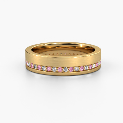 Wussten Sie, dass der Eternity Ehering nicht nur gut aussieht, sondern dass dieser Ehering auch seine eigene symbolische Bedeutung hat? Der Eternity Ehering im Gold, mit perfekt umgebenden kleineren Edelsteine, repräsentiert Ihre ewige Liebe. Da der Ring mit Edelsteinen umgeben ist, scheint er weder Anfang noch Ende zu haben. Schön, finden Sie nicht auch? Dieser spezielle WH0303L15BPM Damen Ehering hat eine Breite von ±5 mm und ist mit 1.3 mm Pink Saphir besetzt. Der Schmuckdesigner, Mitglied eines spezialisierten Teams, erstellt ein grafisches 3D-Design Ihres Ehering. Wenn es Ihnen gefällt, können Sie auch einen Dummy Ring bestellen, so dass Sie ihn anprobieren und Ihre Ehering vor der Anfertigung sehen können. Anschließend wird unser Goldschmied in unserem eigenen Studio mit großer Sorgfalt Ihren einzigartigen Ring kreieren. Eine sorgfältige Arbeit, denn sowohl das Anfertigen, als auch das Finish Ihre Ehering erfordern ein scharfes Auge. Und genau das macht unser Handwerk so besonders. Ihr einzigartiger Ehering ist das Ergebnis echter leidenschaftlicher Handwerkskunst!Dieser Ehering kann auch als Inspirationsquelle dienen. Möchtest du den Ring matt oder glänzend (ohne Aufpreis) haben, oder lieber breiter oder schmaler? Alles ist möglich. Da es unzählige Variationen gibt, können wir nicht alles auf unserer Website zeigen. Hast du eine Idee für schöne Eheringe oder irgendwo anders ein schönes Set Trauringe gesehen? Kontaktiere uns gerne, unsere Designer stehen bereit, um dir zu helfen.Da wir unsere eigenen Ringe entwerfen und liefern, können wir Ihre Eheringe zu einem Preis anbieten, den Sie nirgendwo anders finden. Ein Ring wird auf Bestellung angefertigt, wodurch kein überschüssiges Material anfällt. So können wir Ihnen ein gutes Angebot zum besten Preis machen.Um es einfacher zu machen, bieten wir eine kostenlose 30-tägige Rücksendung.