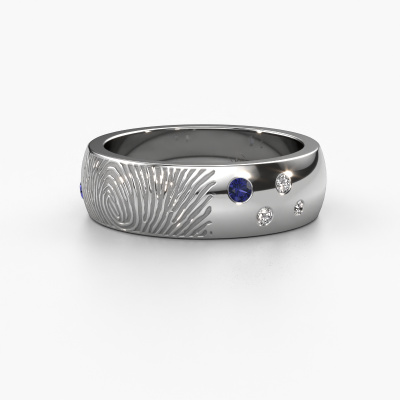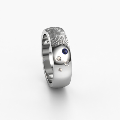Was könnte einzigartiger sein als ein Fingerabdruck? Das macht diesen unisex Ehering mit Saphir so besonders. Ein persönlicher Fingerabdruck Ihres geliebten Menschen, in das Symbol Ihrer ewigen Liebe eingraviert. Wäre es nicht schön, diesen moderne Ehering an Ihrem Hochzeitstag auf den Finger Ihres Partners zu schieben? Wie funktioniert das? Zuerst bestellen Sie den Ehering, nachdem Sie ihn nach Ihren Wünschen angepasst haben. Sobald Ihre Bestellung aufgegeben wurde, senden Sie uns eine E-Mail mit dem von Ihnen gewünschten Fingerabdruck. Werfen Sie einen Blick in unsere Datenbank am unteren Rand dieser Seite, um weitere Anweisungen zum Erstellen eines Fingerabdrucks zu erhalten. Dieser Platin Minke Ehering hat eine Breite von ±6 mm. Wählen Sie Ihre eigenen Edelsteine, um Ihre Liebe zu repräsentieren. Wir bieten eine Vielzahl an exquisiten Edelsteinen, die unser Goldschmied in Ihre Ehering einfasst. So bekommen Sie am Ende einen einzigartigen Ehering. Einen, der perfekt zu Ihnen passt. Sehen Sie sich einfach die oben genannten Optionen an und passen Sie Ihre Ehering sofort an.Sie können sich übrigens auch inspirieren lassen von diesem Eheringe und den Ringen weiter nach Ihrem Geschmack anpassen. Möchten Sie zum Beispiel lieber einen breiteren oder schmaleren Ring oder einen mattierten oder glänzenden Ring? Alles ist möglich. Auch wenn Sie selbst eine Idee haben für einzigartigen Eheringe, oder vielleicht haben Sie selbst irgendwo sonst einen schönen Set Eheringen gefunden: kein Problem! Sie können uns gern anrufen, unsere Designer besprechen gern alle Möglichkeiten mit Ihnen!Da wir unsere eigenen Ringe entwerfen und liefern, können wir Ihre Eheringe zu einem Preis anbieten, den Sie nirgendwo anders finden. Ein Ring wird auf Bestellung angefertigt, wodurch kein überschüssiges Material anfällt. So können wir Ihnen ein gutes Angebot zum besten Preis machen.Um es einfacher zu machen, bieten wir eine kostenlose 30-tägige Rücksendung.