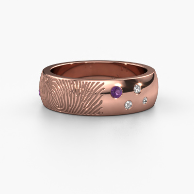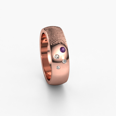 Was könnte einzigartiger sein als ein Fingerabdruck? Das macht diesen unisex Ehering mit Amethyst so besonders. Ein persönlicher Fingerabdruck Ihres geliebten Menschen, in das Symbol Ihrer ewigen Liebe eingraviert. Wäre es nicht schön, diesen moderne Ehering an Ihrem Hochzeitstag auf den Finger Ihres Partners zu schieben? Wie funktioniert das? Zuerst bestellen Sie den Ehering, nachdem Sie ihn nach Ihren Wünschen angepasst haben. Sobald Ihre Bestellung aufgegeben wurde, senden Sie uns eine E-Mail mit dem von Ihnen gewünschten Fingerabdruck. Werfen Sie einen Blick in unsere Datenbank am unteren Rand dieser Seite, um weitere Anweisungen zum Erstellen eines Fingerabdrucks zu erhalten. Dieser Roségold Minke Ehering hat eine Breite von ±6 mm. Wählen Sie Ihre eigenen Edelsteine, um Ihre Liebe zu repräsentieren. Wir bieten eine Vielzahl an exquisiten Edelsteinen, die unser Goldschmied in Ihre Ehering einfasst. So bekommen Sie am Ende einen einzigartigen Ehering. Einen, der perfekt zu Ihnen passt. Sehen Sie sich einfach die oben genannten Optionen an und passen Sie Ihre Ehering sofort an.Sie können sich übrigens auch inspirieren lassen von diesem Eheringe und den Ringen weiter nach Ihrem Geschmack anpassen. Möchten Sie zum Beispiel lieber einen breiteren oder schmaleren Ring oder einen mattierten oder glänzenden Ring? Alles ist möglich. Auch wenn Sie selbst eine Idee haben für einzigartigen Eheringe, oder vielleicht haben Sie selbst irgendwo sonst einen schönen Set Eheringen gefunden: kein Problem! Sie können uns gern anrufen, unsere Designer besprechen gern alle Möglichkeiten mit Ihnen!Da wir unsere eigenen Ringe entwerfen und liefern, können wir Ihre Eheringe zu einem Preis anbieten, den Sie nirgendwo anders finden. Ein Ring wird auf Bestellung angefertigt, wodurch kein überschüssiges Material anfällt. So können wir Ihnen ein gutes Angebot zum besten Preis machen.Um es einfacher zu machen, bieten wir eine kostenlose 30-tägige Rücksendung.