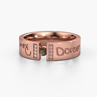 Ein einzigartiger Roségold Trauring mit Rauchquarz! Was diesen WH2094L16C Damen Trauring so besonders macht ist, dass er mit einem speziellen Text graviert werden kann, der für Sie von Bedeutung ist. Ein Wort, ein kurzer Satz, oder der Teil eines Liedtextes. Welcher Text auch immer für Sie am wichtigsten ist. Erinnern Sie sich daran mit einer exquisiten Gravur in diesem moderne Trauring. Dieser eigenem Text Damen Trauring hat eine Breite von ±6 mm. Sie können in unserem Online-Tool eine Kombination aus Edelmetallen wählen. Alles ist möglich! Es ist gut, sich die Eigenschaften der verschiedenen Edelmetalle anzusehen. Gold und Silber sind zum Beispiel weichere Metalle. Die Karat werden durch die Menge der hinzugefügten zusätzlichen Metalle bestimmt. Wenn der Goldschmied nicht viel hinzufügt, sind die Karat höher und der Trauring wird weicher. Wenn er mehr Metalle hinzufügt, hat das Schmuckstück einen geringeren Wert in Karat. Ein weicheres Edelmetall kann trotzdem für Ihre moderne Trauring verwendet werden! Wenn Sie ein Edelmetall bevorzugen, das ein Leben lang halten wird, empfehlen wir Platin. Es ist das robusteste und langlebigste Metall, dass unser Goldschmied verwendet.Dieser Trauring kann auch als Inspirationsquelle dienen. Möchtest du den Ring matt oder glänzend (ohne Aufpreis) haben, oder lieber breiter oder schmaler? Alles ist möglich. Da es unzählige Variationen gibt, können wir nicht alles auf unserer Website zeigen. Hast du eine Idee für schöne Trauringe oder irgendwo anders ein schönes Set Trauringe gesehen? Kontaktiere uns gerne, unsere Designer stehen bereit, um dir zu helfen.Mit unserer modernen Technik, kombiniert mit Handwerk, können wir Schmuckstücke von höchster Qualität mit größter Sorgfalt für Sie entwerfen und anpassen. Unsere Trauringe sind immer um 30 Prozent günstiger als bei anderen Juwelieren. Wir fertigen Trauringe auf Bestellung, also müssen wir keine großen Lager unterhalten.Um es einfacher zu machen, bieten wir eine kostenlose 30-tägige Rücksendung.