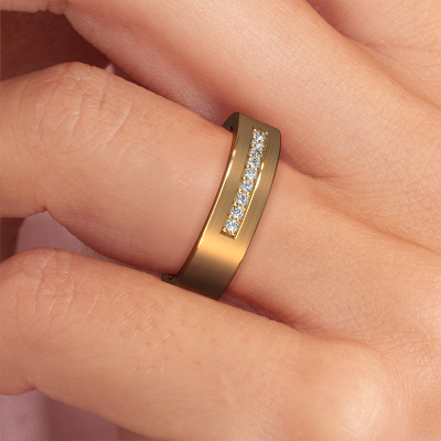 Dieser moderne Damen Ehering ist ein atemberaubender, moderner Ehering, der wirklich Ihre einzigartige Liebe symbolisiert! Perfekt für Männer mit einem zeitgenössischen Stil. Einfach den Ring nach Ihren Wünschen anpassen. Unser Goldschiede würde sich jeder Herausforderung stellen, um einen perfekten Gold Ring zu kreieren und wird in unserem eigenen Atelier an dem von Ihnen entworfenen Ring arbeiten. Er wird Ihren WH0113L15BM Ehering sorgfältig und leidenschaftlich mit den modernsten Techniken, kombiniert mit purer Handwerkskunst, von Hand anfertigen. Und das ergibt einen einzigartigen, zeitgenössischen Ring! Dieser moderne WH0113L15BM Ehering ist mit rund Lab grown Diamant besetzt, ±5 mm breit und hat ein mattes Finish. Gold steht für Liebe und deshalb liebt unser Goldschmied das Design Ihre moderne Ehering. Wir sind ein stolzes Mitglied des Responsible Jewellery Council. Das heißt, wir verwenden nur ehrliches Gold. Darauf sind wir natürlich sehr stolz. Es ist auch möglich, eigenes Gold für das Design Ihre Ehering zu verwenden. Jedes Schmuckstück wird von Hand in unserem eigenen Atelier angefertigt, so dass wir diese Option anbieten können. Das gibt Ihnen die Möglichkeit, Ihrem Ring eine zusätzliche persönliche Note hinzuzufügen. Jeder Ring hat seine eigene Geschichte.Sie können sich übrigens auch inspirieren lassen von diesem Eheringe und den Ringen weiter nach Ihrem Geschmack anpassen. Möchten Sie zum Beispiel lieber einen breiteren oder schmaleren Ring oder einen mattierten oder glänzenden Ring? Alles ist möglich. Auch wenn Sie selbst eine Idee haben für einzigartigen Eheringe, oder vielleicht haben Sie selbst irgendwo sonst einen schönen Set Eheringen gefunden: kein Problem! Sie können uns gern anrufen, unsere Designer besprechen gern alle Möglichkeiten mit Ihnen!Da wir unseren eigenen Schmuckstücken entwerfen und liefern, können wir Ihnen Eheringe zu einem Preis anbieten, den Sie nirgendwo anders finden. Ihre Eheringe werden auf Bestellung angefertigt, wodurch kein überschüssiges Material anfällt. So können wir Ihnen ein gutes Angebot zum besten Preis machen.Um es einfacher zu machen, bieten wir eine kostenlose 30-tägige Rücksendung.
