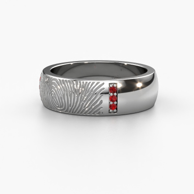 Was könnte einzigartiger sein als ein Fingerabdruck? Das macht diesen Damen Ehering mit Rubin so besonders. Ein persönlicher Fingerabdruck Ihres geliebten Menschen, in das Symbol Ihrer ewigen Liebe eingraviert. Wäre es nicht schön, diesen Fantasie Ehering an Ihrem Hochzeitstag auf den Finger Ihres Partners zu schieben? Wie funktioniert das? Zuerst bestellen Sie den Ehering, nachdem Sie ihn nach Ihren Wünschen angepasst haben. Sobald Ihre Bestellung aufgegeben wurde, senden Sie uns eine E-Mail mit dem von Ihnen gewünschten Fingerabdruck. Werfen Sie einen Blick in unsere Datenbank am unteren Rand dieser Seite, um weitere Anweisungen zum Erstellen eines Fingerabdrucks zu erhalten. Dieser Weißgold Daine Ehering hat eine Breite von ±6 mm. Gold steht für Liebe und deshalb liebt unser Goldschmied das Design Ihre Fantasie Ehering. Wir sind ein stolzes Mitglied des Responsible Jewellery Council. Das heißt, wir verwenden nur ehrliches Gold. Darauf sind wir natürlich sehr stolz. Es ist auch möglich, eigenes Gold für das Design Ihre Ehering zu verwenden. Jedes Schmuckstück wird von Hand in unserem eigenen Atelier angefertigt, so dass wir diese Option anbieten können. Das gibt Ihnen die Möglichkeit, Ihrem Ring eine zusätzliche persönliche Note hinzuzufügen. Jeder Ring hat seine eigene Geschichte.Sie können sich übrigens auch inspirieren lassen von diesem Eheringe und den Ringen weiter nach Ihrem Geschmack anpassen. Möchten Sie zum Beispiel lieber einen breiteren oder schmaleren Ring oder einen mattierten oder glänzenden Ring? Alles ist möglich. Auch wenn Sie selbst eine Idee haben für einzigartigen Eheringe, oder vielleicht haben Sie selbst irgendwo sonst einen schönen Set Eheringen gefunden: kein Problem! Sie können uns gern anrufen, unsere Designer besprechen gern alle Möglichkeiten mit Ihnen!Da wir unsere eigenen Ringe entwerfen und liefern, können wir Ihre Eheringe zu einem Preis anbieten, den Sie nirgendwo anders finden. Ein Ring wird auf Bestellung angefertigt, wodurch kein überschüssiges Material anfällt. So können wir Ihnen ein gutes Angebot zum besten Preis machen.Um es einfacher zu machen, bieten wir eine kostenlose 30-tägige Rücksendung.