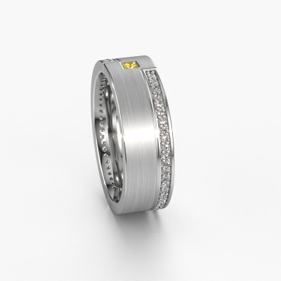 Dieser exklusive Damen Ehering ist ein atemberaubender, moderner Ehering, der wirklich Ihre einzigartige Liebe symbolisiert! Perfekt für Männer mit einem zeitgenössischen Stil. Einfach den Ring nach Ihren Wünschen anpassen. Unser Goldschiede würde sich jeder Herausforderung stellen, um einen perfekten Ring zu kreieren und wird in unserem eigenen Atelier an dem von Ihnen entworfenen Ring arbeiten. Er wird Ihren WH2048L17DM ±7x2.4 mm Ehering sorgfältig und leidenschaftlich mit den modernsten Techniken, kombiniert mit purer Handwerkskunst, von Hand anfertigen. Und das ergibt einen einzigartigen, zeitgenössischen Ring! Dieser exklusive Weißgold WH2048L17DM Ehering ist mit princess Gelb Saphir besetzt, ±7 mm breit und hat ein mattes Finish. Passen Sie einfach Ihre Edelsteine und Farben mit unserem Online-Tool an. Unsere Schmuckdesigner erstellen eine 3D-Zeichnung Ihres Designs, damit Sie das Endergebnis sehen können. Unsere Goldschmiede werden anschließend Ihre Ehering nach alter Handwerkskunst von Hand anfertigen. Unser Ziel ist es, den Ehering Ihre Träume anzufertigen. Ein einzigartiger Ehering, der perfekt zu Ihrem Stil passt!Sie können sich übrigens auch inspirieren lassen von diesem Eheringe und den Ringen weiter nach Ihrem Geschmack anpassen. Möchten Sie zum Beispiel lieber einen breiteren oder schmaleren Ring oder einen mattierten oder glänzenden Ring? Alles ist möglich. Auch wenn Sie selbst eine Idee haben für einzigartigen Eheringe, oder vielleicht haben Sie selbst irgendwo sonst einen schönen Set Eheringen gefunden: kein Problem! Sie können uns gern anrufen, unsere Designer besprechen gern alle Möglichkeiten mit Ihnen!Mit unserer modernen Technik, kombiniert mit Handwerk, können wir Schmuckstücke von höchster Qualität mit größter Sorgfalt für Sie entwerfen und anpassen. Unsere Eheringe sind immer um 30 Prozent günstiger als bei anderen Juwelieren. Wir fertigen Eheringe auf Bestellung, also müssen wir keine großen Lager unterhalten.Um es einfacher zu machen, bieten wir eine kostenlose 30-tägige Rücksendung.