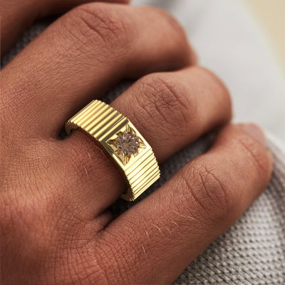 Für den zeitgemäßen, stilvollen Mann, der ein bisschen Extravaganz mag, bieten wir den schwere 14 Karat Gold Elias Pinky Ring mit Braun Diamant an. Traditionell wurde ein Ring am kleinen Finger als Zeichen des Reichtums getragen. Deshalb ist ein Ring am kleinen Finger perfekt für Männer, die auffallen wollen. Wie gefällt Ihnen dieser moderne Gold Herrenring? Passen Sie diesen Elias Herrenring einfach mit unserem Online-Tool an. Anschließend wird Ihr persönlicher, Beste Preise Elias Herrenring in Handarbeit von unseren Goldschmieden angefertigt. Edelmetalle und Edelsteine können nach Ihren Wünschen angepasst werden. Haben Sie spezielle Wünsche, die in unserem Online-Tool nicht verfügbar sind? Setzen Sie sich mit uns in Verbindung. Wir passen Ihren persönlichen moderne Herrenring nach Ihren Wünschen an.