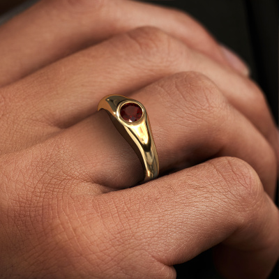 Für den zeitgemäßen, stilvollen Mann, der ein bisschen Extravaganz mag, bieten wir den schmale 14 Karat Gold Thorben Pinky Ring mit Granat an. Traditionell wurde ein Ring am kleinen Finger als Zeichen des Reichtums getragen. Deshalb ist ein Ring am kleinen Finger perfekt für Männer, die auffallen wollen. Unsere Goldschmiede kreieren Ihren individuellen Herrenring leidenschaftlich, mit größter Sorgfalt und nach Ihren Wünschen. Das Gold Herrenring, wie hier abgebildet, kann mit unserem Online-Tool individuell angepasst werden. Bitte fragen Sie unsere Schmuckdesigner um Hilfe, wenn Sie Änderungen wünschen, die in unserem Online-Tool nicht verfügbar sind. Gerne beantworten wir Ihnen alle offenen Fragen.
