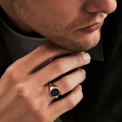 Der schwere Herman 2 Siegelring mit 12x10 mm oval form Onyx Oberfläche, wie oben gezeigt, ist voll von Tradition. Üblicherweise wurde der Siegelring vom Vater an den Sohn weitergegeben. Beginnen Sie Ihre eigene Tradition mit diesem schwere, Roségold Siegelring. Wir würden uns auch sehr freuen, Ihren Ring mit einem Monogramm oder einem Familienwappen gravieren zu dürfen. Bitte sehen Sie sich unsere Datenbank für weitere Anfragen und Optionen an. Sie können die Datenbank am unteren Rand dieser Seite finden. Beginnen Sie eine neue Tradition mit dem klassische Roségold Herman 2 Siegelring. Unsere Goldschmiede kreieren Ihren individuellen Siegelring leidenschaftlich, mit größter Sorgfalt und nach Ihren Wünschen. Das Roségold Siegelring, wie hier abgebildet, kann mit unserem Online-Tool individuell angepasst werden. Bitte fragen Sie unsere Schmuckdesigner um Hilfe, wenn Sie Änderungen wünschen, die in unserem Online-Tool nicht verfügbar sind. Gerne beantworten wir Ihnen alle offenen Fragen.Unser Team von talentierten, leidenschaftlichen Designern fügt unserer Online-Kollektion täglich neue Ring-Designs hinzu. Unser Ziel dabei ist es, Ihnen eine große Vielfalt an Schmuckstücken anbieten zu können. Bitte zögern Sie nicht, ein Angebot anzufordern, wenn Sie spezielle Wünsche für Ihren Ring haben. Wir garantieren Ihnen ein Angebot, das Sie nicht ablehnen können.Haben Sie ein bestimmtes Budget? Sie können uns gerne kontaktieren, damit wir Ihre Optionen besprechen können. Wir bieten unsere Ringe zum garantiert besten Preis, denn wir fertigen sie auf Bestellung. Solche Preise finden Sie nirgendwo anders!Um es einfacher zu machen, bieten wir eine kostenlose 30-tägige Rücksendung.