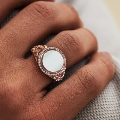 Kleiden Sie sich mit diesem runde Roségold Moor 2 Siegelring, denn mit dem richtigen Ring geben Sie ein starkes persönliches Statement. Dieser Moor 2 Siegelring wird hier in 14 Karat Roségold gezeigt. Wenn das nicht Ihrem Stil entspricht, können Sie das Edelmetall ganz nach Ihren Wünschen gestalten. Schließlich möchten Sie einen Siegelring, der zu Ihrem Stil passt. Ein Ring, der wirklich zu Ihnen passt. Einen, der sagt: Das bin ich!Wie gefällt Ihnen dieser moderne Roségold Siegelring? Passen Sie diesen Moor 2 Siegelring einfach mit unserem Online-Tool an. Anschließend wird Ihr persönlicher, gewagte Moor 2 Siegelring in Handarbeit von unseren Goldschmieden angefertigt. Edelmetalle und Edelsteine können nach Ihren Wünschen angepasst werden. Haben Sie spezielle Wünsche, die in unserem Online-Tool nicht verfügbar sind? Setzen Sie sich mit uns in Verbindung. Wir passen Ihren persönlichen moderne Siegelring nach Ihren Wünschen an.Unser Team von talentierten, leidenschaftlichen Designern fügt unserer Online-Kollektion täglich neue Ringe-Designs hinzu. Unser Ziel dabei ist es, Ihnen eine große Vielfalt an Schmuckstücken anbieten zu können. Bitte zögern Sie nicht, ein Angebot anzufordern, wenn Sie spezielle Wünsche für Ihren Ring haben. Wir garantieren Ihnen ein Angebot, das Sie nicht ablehnen können.Durch die Kombination modernster Technik mit uralter Handwerkskunst können wir alle Ringe in unserem eigenen Studio anfertigen. Jedes Schmuckstück wird auf Anfrage gefertigt. Das ist vorteilhaft, weil wir Ihnen dadurch einen Preis anbieten können, den Sie nirgendwo anders finden.Um es einfacher zu machen, bieten wir eine kostenlose 30-tägige Rücksendung.