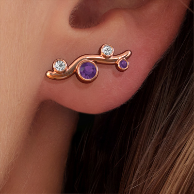 Wie würden Sie Ihren Stil beschreiben? Suchen Sie etwas Anderes? Diese Fantasie, Roségold Ohrsteckers sind einzigartig und werden von unseren erfahrenen Goldschmieden gefertigt. Diese Fantasie Ohrsteckers sind mit Amethysten besetzt. Jeder der Amethysten wird sorgfältig ausgewählt, denn wir glauben, dass Ihre zierlich Ohrsteckers nur mit den edelsten Steinen geeignet sein sollten. Sehen Sie das auch so? Die Jin nur für Sie gemacht, mit großer Liebe zum Detail und Design.. Das Besondere an DiamondsByMe ist, dass Sie Ihren eigenen Jin Ohrsteckers entwerfen können. Die Fantasie wird Wirklichkeit! Sobald Sie mit dem Anpassen fertig sind, werden unsere Goldschmiede diese zierliche Ohrsteckers von Hand anfertigen. Machen Sie einen Traum wahr!Da wir unseren eigenen Schmuckstücken entwerfen und liefern, können wir Ihnen Ohrsteckers zu einem Preis anbieten, den Sie nirgendwo anders finden. Ohrsteckers werden auf Bestellung angefertigt, wodurch kein überschüssiges Material anfällt. So können wir Ihnen ein gutes Angebot zum besten Preis machen. Wir verstehen, dass es sich riskant anfühlt, Ihre Ohrsteckers online zu kaufen. Jedoch helfen wir Ihnen gerne beim Designprozess unter Berücksichtigung Ihres Budgets. Um es einfacher zu machen, bieten wir eine kostenlose 30-tägige Rücksendung.