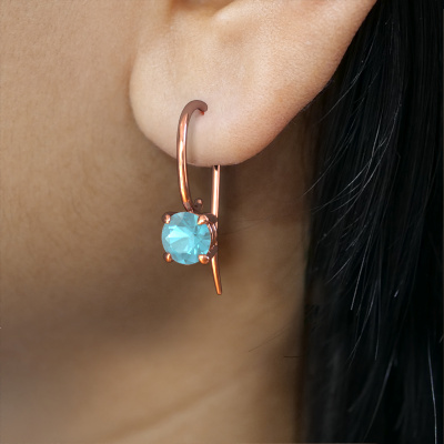 Solitär Ohrhänger sind klassische und doch modische Schmuckstücke. Bei Solitär Ohrhänger sind die Krappen offen und es wird nur ein Stein gesetzt, der das Licht aus jedem Blickwinkel reflektiert. Weil der Blau Topas höher positioniert ist, werden diese moderne Ohrhänger zu einem wahren Blickfang. Wir fertigen jedes Detail dieser Solitär Ohrhänger sorgfältig von Hand. Unsere erfahrenen Goldschmiede setzen die Blaue Topas mit höchster Präzision in diese Roségold Ohrhänger, so dass Licht von allen Seiten gleichmäßig reflektiert wird. Die Ohrhänger sind mit 5 mm rund Blaue Topas besetzt. Die Cleo RND Ohrringe sind einzigartige Schmuckstücke, weil sie nach Ihren Wünschen angefertigt werden können.. Sobald Sie Ihren moderne Ohrhänger mit unserem Online-Tool fertiggestellt haben, beginnen unsere Goldschmiede mit der kreativen Anfertigung Ihrer Ohrhänger. Dieser wird mit Leidenschaft und Sorgfalt nach alter Handwerkskunst gefertigt. Darüber hinaus sind unsere Edelsteine ehrlich gewonnen. Wenn Sie spezielle Änderungen an Ihren Cleo RND Ohrhänger vornehmen möchten, die in unserem Online-Tool nicht verfügbar sind, wenden Sie sich bitte an unsere Experten. Da wir unseren eigenen Schmuckstücken entwerfen und liefern, können wir Ihnen Ohrhänger zu einem Preis anbieten, den Sie nirgendwo anders finden. Ohrhänger werden auf Bestellung angefertigt, wodurch kein überschüssiges Material anfällt. So können wir Ihnen ein gutes Angebot zum besten Preis machen. Wir verstehen, dass es sich riskant anfühlt, Ihre Ohrhänger online zu kaufen. Jedoch helfen wir Ihnen gerne beim Designprozess unter Berücksichtigung Ihres Budgets. Um es einfacher zu machen, bieten wir eine kostenlose 30-tägige Rücksendung.