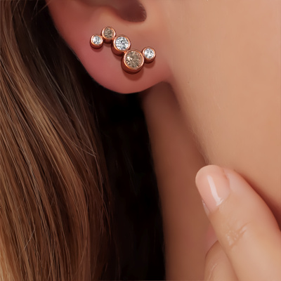 Die zierliche Roségold Ryan Ohrringe sind mit atemberaubenden rund Braune Diamanten besetzt. Diese Ohrringe lassen sich ideal mit farbigen Edelsteinen kombinieren, aber wenn Sie andere Edelsteine bevorzugen, können Sie aus unserer Kollektion wählen. Unsere erfahrenen Juweliere fertigen gerne von Hand Ohrringe für Sie in unserem eigenen Atelier. Wir verwenden ein Einzigartiges Konzept, eine perfekte Kombination aus alter Handwerkskunst und den neuesten, modernsten Techniken. Das ermöglicht uns, Ihre Ohrringe in Perfektion zu gestalten. Die Ohrringe, wie hier gezeigt, sind mit Braune Diamanten besetzt. Das Besondere an DiamondsByMe ist, dass Sie Ihren eigenen Ryan Ohrringe entwerfen können. Die Fantasie wird Wirklichkeit! Sobald Sie mit dem Anpassen fertig sind, werden unsere Goldschmiede diese zierliche Ohrringe von Hand anfertigen. Machen Sie einen Traum wahr!De Ryan Ohrringe werden von einem unserer Goldschmiedemeister mit Leidenschaft gefertigt.Mit unserer modernen Technik können wir Schmuckstücke von höchster Qualität mit größter Sorgfalt für Sie entwerfen und anpassen. Unsere Ohrringe sind immer um 30 Prozent günstiger als bei anderen Juwelieren. Wir fertigen Ohrringe auf Bestellung, also müssen wir keine großen Lager unterhalten. Wenn Sie ein bestimmtes Budget haben, beraten wir Sie gerne entsprechend.Um es einfacher zu machen, bieten wir eine kostenlose 30-tägige Rücksendung.