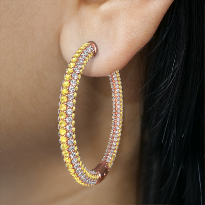 Mit einem Paar exklusiver Creole sticht jede Frau aus der Menge hervor. Bei DiamondsByMe kreieren wir exklusive und außergewöhnlichen Schmuck, und wir verwenden nur die besten Edelmetalle und Edelsteine. Diese exklusiven Roségold Creole sind ein wahres Kunstwerk! Jedes kleine Detail wurde von unserem erfahrenen Juwelier mit Geduld und Leidenschaft gefertigt. Das erfordert ein scharfes Auge und eine geschickte Hand, damit der Ring sorgfältig zur Perfektion gebracht wird. Und genau darum bemühen sich unsere erfahrenen Goldschmiede- Perfektion! Der exquisite Gelb Saphir sind so gefasst, dass sie noch heller strahlen. Das verleiht den rund Creole einen zusätzlichen, glamourösen Look. Oben abgebildet sind unsere Roségold Hope 25mm Creole mit rund Gelb Saphir. Die Hope 25mm die Ohrringe werden von unserem Goldschmiedemeister in unserem eigenen Studio für Sie angefertigt.. Unsere Goldschmiede kreieren Ihre individuelle Creole leidenschaftlich, mit größter Sorgfalt und nach Ihren Wünschen. Das Roségold Creole-Set, wie hier abgebildet, kann mit unserem Online-Tool individuell angepasst werden. Bitte fragen Sie unsere Schmuckdesigner um Hilfe, wenn Sie Änderungen wünschen, die in unserem Online-Tool nicht verfügbar sind. Gerne beantworten wir Ihnen alle offenen Fragen. Nachdem Sie Ihre Bestellung aufgegeben haben, beginnen unsere Goldschmiede mit dem kreativen Prozess der Herstellung Ihres Hope 25mm Creole. Wir haben keine Lager. Das ist vorteilhaft, da diese Kosten nicht an Sie weitergegeben werden. Daher sind wir in der Lage, Schmuck zu außergewöhnlich niedrigen Preisen anzubieten. Um es einfacher zu machen, bieten wir eine kostenlose 30-tägige Rücksendung.
