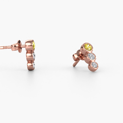 Jede moderne Frau sollte ihr eigenes Paar zeitgenössischer Ohrringe besitzen. Kaufen Sie sie bei DiamondsByMe. Unsere erfahrenen Goldschmiede verwenden nur die besten Edelmetalle und die feinsten Edelsteine, um unsere exquisiten Schmuckstücke zu fertigen. Nehmen Sie zum Beispiel dieses trendige, Roségold Felica Ohrringe Set mit Gelb Saphir. Jeder Gelb Saphir wird mit großer Sorgfalt ausgewählt, denn wir sind der Meinung, dass Ihre Ohrringe nur mit den feinsten Gelb Saphir geeignet werden sollten. Unsere leidenschaftlichen Goldschmiede kreieren Ihre Ohrringe in unserem eigenen Atelier und setzen den Gelb Saphir in den Ohrringen mit größter Sorgfalt. Anschließend werden sie so lange bearbeitet und poliert, bis es offensichtlich ist: Die perfekten Ohrringe sind fertig! Die Felica Ohrringe werden von einem Team leidenschaftlicher Goldschmiede und Designer angefertigt. Das wird Ihr einzigartiges Kronjuwel wirklich zu einem Blickfang machen.. Das Besondere an DiamondsByMe ist, dass Sie Ihren eigenen Felica Ohrringe entwerfen können. Die Fantasie wird Wirklichkeit! Sobald Sie mit dem Anpassen fertig sind, werden unsere Goldschmiede diese preiswertige Ohrringe von Hand anfertigen. Machen Sie einen Traum wahr! Durch die Kombination modernster Technik mit uralter Handwerkskunst können wir alle Ohrringe in unserem eigenen Studio anfertigen. Jedes Schmuckstück wird auf Anfrage gefertigt. Das ist vorteilhaft, weil wir Ihnen dadurch einen Preis anbieten können, den Sie nirgendwo anders finden. Um es einfacher zu machen, bieten wir eine kostenlose 30-tägige Rücksendung.