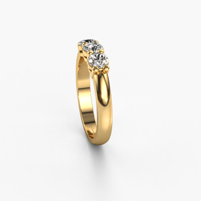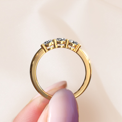 Dieser 3 Stone Ring wird Michelle 3 genannt. Diese Art von Ring wird als Memoire ring bezeichnet, da seine Edelsteine in einer durchgehenden Linie angeordnet sind. Dadurch kann er einfach mit anderen Ringen kombiniert werden. Das Band dieses 14 Karat Gold Ring ist in einer Kombination aus Diamant und Lab-grown Diamant besetzt. Sie können ganz einfach online die Kombination auswählen, die Sie bevorzugen. Wie Sie sehen, wird bei diesem Gold Memoire Ring mehre Diamanten gesetzt. Der Memoire ring steht für Zusammenwirken. Und genau das tun diese Edelsteine, zusammenwirken. Zusammen geben sie dem Band eines klassische Ring einen schönen Effekt! So ein bedeutungsvoller Ring, finden Sie nicht auch? Alle von uns ausgesuchten Diamanten werden von unserem erfahrenen Goldschiede in Handarbeit eingefasst. Das ist eine präzise Aufgabe, die nur durch die Kombination von purer Handwerkskunst und dem Einsatz neuester Techniken erfolgreich durchgeführt werden kann, um eine optimale Wirkung zu erzielen. Um eine perfekte Lichtreflexion zu erzeugen, müssen alle Edelsteine auf die gleiche Weise perfekt ausgerichtet sein. Während der Fertigung wird der Goldschmied Meister daher ständig die Lichtreflexion überwachen, um zu gewährleisten, dass die Diamanten perfekt ausgerichtet sind. Das erfordert eine geschickte Hand und viel Geduld, aber dann wird das Endprodukt zu einem echten Kunstwerk. Und genau das ist unsere Mission!Haben Sie ein bestimmtes Budget? Sie können uns gerne kontaktieren, damit wir Ihre Optionen besprechen können. Wir bieten unsere Ringe zum garantiert besten Preis, denn wir fertigen sie auf Bestellung. Solche Preise finden Sie nirgendwo anders!