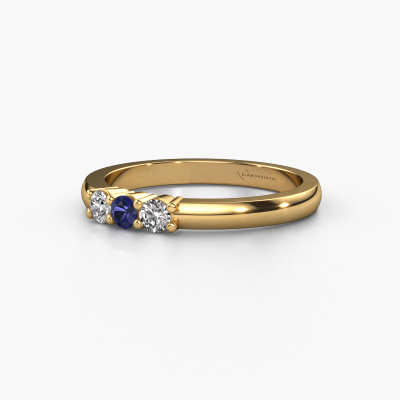 Dieser 3 Stone Ring wird Yasmin 3 genannt. Diese Art von Ring wird als Memoire ring bezeichnet, da seine Edelsteine in einer durchgehenden Linie angeordnet sind. Dadurch kann er einfach mit anderen Ringen kombiniert werden. Das Band dieses 14 Karat Gold Ring ist in einer Kombination aus Saphir und Lab-grown Diamant besetzt. Sie können ganz einfach online die Kombination auswählen, die Sie bevorzugen. Wie Sie sehen, wird bei diesem Gold Memoire Ring mehre Saphir gesetzt. Der Memoire ring steht für Zusammenwirken. Und genau das tun diese Edelsteine, zusammenwirken. Zusammen geben sie dem Band eines klassische Ring einen schönen Effekt! So ein bedeutungsvoller Ring, finden Sie nicht auch? Alle von uns ausgesuchten Saphir werden von unserem erfahrenen Goldschiede in Handarbeit eingefasst. Das ist eine präzise Aufgabe, die nur durch die Kombination von purer Handwerkskunst und dem Einsatz neuester Techniken erfolgreich durchgeführt werden kann, um eine optimale Wirkung zu erzielen. Um eine perfekte Lichtreflexion zu erzeugen, müssen alle Edelsteine auf die gleiche Weise perfekt ausgerichtet sein. Während der Fertigung wird der Goldschmied Meister daher ständig die Lichtreflexion überwachen, um zu gewährleisten, dass die Saphir perfekt ausgerichtet sind. Das erfordert eine geschickte Hand und viel Geduld, aber dann wird das Endprodukt zu einem echten Kunstwerk. Und genau das ist unsere Mission!Durch die Kombination modernster Technik mit uralter Handwerkskunst können wir alle Ringe in unserem eigenen Studio anfertigen. Jedes Schmuckstück wird auf Anfrage gefertigt. Das ist vorteilhaft, weil wir Ihnen dadurch einen Preis anbieten können, den Sie nirgendwo anders finden.Unsere talentierten, leidenschaftlichen Designer fügen unserer Online-Kollektion täglich neue Designs hinzu. Zusammen versuchen sie, eine vielfältige Kollektion feinster Schmuckstücke zu erstellen. Wenn Sie es vorziehen, einen Ring nach Ihrem eigenen Entwurf zu machen, können Sie gerne ein Angebot anfordern. Wir machen Ihnen ein großartiges Angebot, basierend auf Qualität und Preis.Um es einfacher zu machen, bieten wir eine kostenlose 30-tägige Rücksendung.