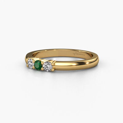 Dieser 3 Stone Ring wird Yasmin 3 genannt. Diese Art von Ring wird als Memoire ring bezeichnet, da seine Edelsteine in einer durchgehenden Linie angeordnet sind. Dadurch kann er einfach mit anderen Ringen kombiniert werden. Das Band dieses 14 Karat Gold Ring ist in einer Kombination aus Smaragd und Lab-grown Diamant besetzt. Sie können ganz einfach online die Kombination auswählen, die Sie bevorzugen. Wie Sie sehen, wird bei diesem Gold Memoire Ring mehre Smaragd gesetzt. Der Memoire ring steht für Zusammenwirken. Und genau das tun diese Edelsteine, zusammenwirken. Zusammen geben sie dem Band eines klassische Ring einen schönen Effekt! So ein bedeutungsvoller Ring, finden Sie nicht auch? Alle von uns ausgesuchten Smaragd werden von unserem erfahrenen Goldschiede in Handarbeit eingefasst. Das ist eine präzise Aufgabe, die nur durch die Kombination von purer Handwerkskunst und dem Einsatz neuester Techniken erfolgreich durchgeführt werden kann, um eine optimale Wirkung zu erzielen. Um eine perfekte Lichtreflexion zu erzeugen, müssen alle Edelsteine auf die gleiche Weise perfekt ausgerichtet sein. Während der Fertigung wird der Goldschmied Meister daher ständig die Lichtreflexion überwachen, um zu gewährleisten, dass die Smaragd perfekt ausgerichtet sind. Das erfordert eine geschickte Hand und viel Geduld, aber dann wird das Endprodukt zu einem echten Kunstwerk. Und genau das ist unsere Mission!Durch die Kombination modernster Technik mit uralter Handwerkskunst können wir alle Ringe in unserem eigenen Studio anfertigen. Jedes Schmuckstück wird auf Anfrage gefertigt. Das ist vorteilhaft, weil wir Ihnen dadurch einen Preis anbieten können, den Sie nirgendwo anders finden.Unsere talentierten, leidenschaftlichen Designer fügen unserer Online-Kollektion täglich neue Designs hinzu. Zusammen versuchen sie, eine vielfältige Kollektion feinster Schmuckstücke zu erstellen. Wenn Sie es vorziehen, einen Ring nach Ihrem eigenen Entwurf zu machen, können Sie gerne ein Angebot anfordern. Wir machen Ihnen ein großartiges Angebot, basierend auf Qualität und Preis.Um es einfacher zu machen, bieten wir eine kostenlose 30-tägige Rücksendung.