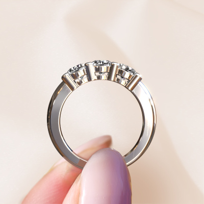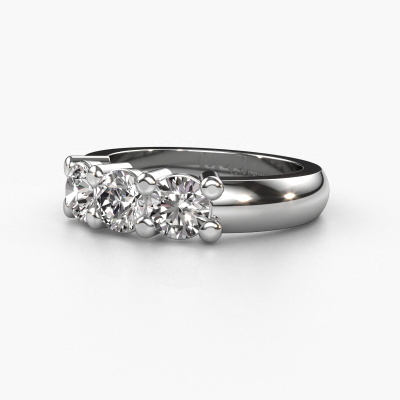 Dieser 3 Stone Ring wird Michelle 3 genannt. Diese Art von Ring wird als Memoire ring bezeichnet, da seine Edelsteine in einer durchgehenden Linie angeordnet sind. Dadurch kann er einfach mit anderen Ringen kombiniert werden. Das Band dieses Platin Ring ist in einer Kombination aus Diamant und Lab-grown Diamant besetzt. Sie können ganz einfach online die Kombination auswählen, die Sie bevorzugen. Wie Sie sehen, wird bei diesem Platin Memoire Ring mehre Diamanten gesetzt. Der Memoire ring steht für Zusammenwirken. Und genau das tun diese Edelsteine, zusammenwirken. Zusammen geben sie dem Band eines klassische Ring einen schönen Effekt! So ein bedeutungsvoller Ring, finden Sie nicht auch? Alle von uns ausgesuchten Diamanten werden von unserem erfahrenen Goldschiede in Handarbeit eingefasst. Das ist eine präzise Aufgabe, die nur durch die Kombination von purer Handwerkskunst und dem Einsatz neuester Techniken erfolgreich durchgeführt werden kann, um eine optimale Wirkung zu erzielen. Um eine perfekte Lichtreflexion zu erzeugen, müssen alle Edelsteine auf die gleiche Weise perfekt ausgerichtet sein. Während der Fertigung wird der Goldschmied Meister daher ständig die Lichtreflexion überwachen, um zu gewährleisten, dass die Diamanten perfekt ausgerichtet sind. Das erfordert eine geschickte Hand und viel Geduld, aber dann wird das Endprodukt zu einem echten Kunstwerk. Und genau das ist unsere Mission!Haben Sie ein bestimmtes Budget? Sie können uns gerne kontaktieren, damit wir Ihre Optionen besprechen können. Wir bieten unsere Ringe zum garantiert besten Preis, denn wir fertigen sie auf Bestellung. Solche Preise finden Sie nirgendwo anders!