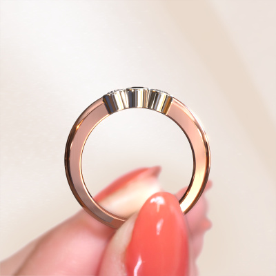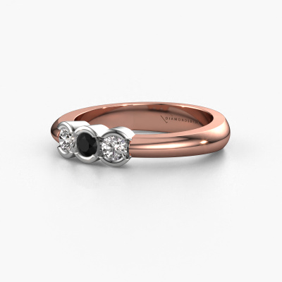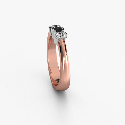 Dieser 3 Stone Ring wird Lotte 3 genannt. Diese Art von Ring wird als Memoire ring bezeichnet, da seine Edelsteine in einer durchgehenden Linie angeordnet sind. Dadurch kann er einfach mit anderen Ringen kombiniert werden. Das Band dieses 14 Karat Roségold Ring ist in einer Kombination aus Schwarz Diamant und Diamant besetzt. Sie können ganz einfach online die Kombination auswählen, die Sie bevorzugen. Wie Sie sehen, wird bei diesem Roségold Memoire Ring mehre Schwarze Diamanten gesetzt. Der Memoire ring steht für Zusammenwirken. Und genau das tun diese Edelsteine, zusammenwirken. Zusammen geben sie dem Band eines moderne Ring einen schönen Effekt! So ein bedeutungsvoller Ring, finden Sie nicht auch? Alle von uns ausgesuchten Schwarze Diamanten werden von unserem erfahrenen Goldschiede in Handarbeit eingefasst. Das ist eine präzise Aufgabe, die nur durch die Kombination von purer Handwerkskunst und dem Einsatz neuester Techniken erfolgreich durchgeführt werden kann, um eine optimale Wirkung zu erzielen. Um eine perfekte Lichtreflexion zu erzeugen, müssen alle Edelsteine auf die gleiche Weise perfekt ausgerichtet sein. Während der Fertigung wird der Goldschmied Meister daher ständig die Lichtreflexion überwachen, um zu gewährleisten, dass die Schwarze Diamanten perfekt ausgerichtet sind. Das erfordert eine geschickte Hand und viel Geduld, aber dann wird das Endprodukt zu einem echten Kunstwerk. Und genau das ist unsere Mission!Durch die Kombination modernster Technik mit uralter Handwerkskunst können wir alle Ringe in unserem eigenen Studio anfertigen. Jedes Schmuckstück wird auf Anfrage gefertigt. Das ist vorteilhaft, weil wir Ihnen dadurch einen Preis anbieten können, den Sie nirgendwo anders finden.Unser Team von talentierten, leidenschaftlichen Designern fügt unserer Online-Kollektion täglich neue Ring-Designs hinzu. Unser Ziel dabei ist es, Ihnen eine große Vielfalt an Schmuckstücken anbieten zu können. Bitte zögern Sie nicht, ein Angebot anzufordern, wenn Sie spezielle Wünsche für Ihren Ring haben. Wir garantieren Ihnen ein Angebot, das Sie nicht ablehnen können.Um es einfacher zu machen, bieten wir eine kostenlose 30-tägige Rücksendung.