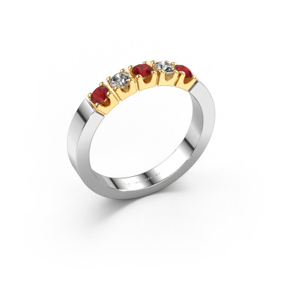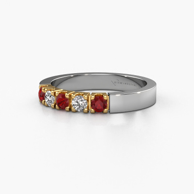Dieser 5 Stone Ring wird Dana 5 genannt. Diese Art von Ring wird als Memoire ring bezeichnet, da seine Edelsteine in einer durchgehenden Linie angeordnet sind. Dadurch kann er einfach mit anderen Ringen kombiniert werden. Das Band dieses 14 Karat Weißgold Ring ist in einer Kombination aus Rubin und Diamant besetzt. Sie können ganz einfach online die Kombination auswählen, die Sie bevorzugen. Wie Sie sehen, wird bei diesem Weißgold Memoire Ring mehre Rubin gesetzt. Der Memoire ring steht für Zusammenwirken. Und genau das tun diese Edelsteine, zusammenwirken. Zusammen geben sie dem Band eines moderne Ring einen schönen Effekt! So ein bedeutungsvoller Ring, finden Sie nicht auch? Alle von uns ausgesuchten Rubin werden von unserem erfahrenen Goldschiede in Handarbeit eingefasst. Das ist eine präzise Aufgabe, die nur durch die Kombination von purer Handwerkskunst und dem Einsatz neuester Techniken erfolgreich durchgeführt werden kann, um eine optimale Wirkung zu erzielen. Um eine perfekte Lichtreflexion zu erzeugen, müssen alle Edelsteine auf die gleiche Weise perfekt ausgerichtet sein. Während der Fertigung wird der Goldschmied Meister daher ständig die Lichtreflexion überwachen, um zu gewährleisten, dass die Rubin perfekt ausgerichtet sind. Das erfordert eine geschickte Hand und viel Geduld, aber dann wird das Endprodukt zu einem echten Kunstwerk. Und genau das ist unsere Mission!Da wir unsere eigenen Ringe entwerfen und liefern, können wir Ihnen einen Ring zu einem Preis anbieten, den Sie nirgendwo anders finden. Ein Ring wird auf Bestellung angefertigt, wodurch kein überschüssiges Material anfällt. So können wir Ihnen ein gutes Angebot zum besten Preis machen. Wir verstehen, dass es sich riskant anfühlt, Ihren Ring online zu kaufen. Jedoch helfen wir Ihnen gerne beim Designprozess unter Berücksichtigung Ihres Budgets.Unsere Online-Kollektion wird täglich um neue Schmuckdesigns ergänzt. Unser Team von leidenschaftlichen Designern ist bemüht, außergewöhnliche und vielfältige Designs zu kreieren. Haben Sie einen Ring gesehen, der Ihnen gefällt? Setzen Sie sich mit uns in Verbindung. Basierend auf einem guten Preis/Leistungsverhältnis machen wir Ihnen ein Angebot, das Sie nicht ablehnen können!Um es einfacher zu machen, bieten wir eine kostenlose 30-tägige Rücksendung.