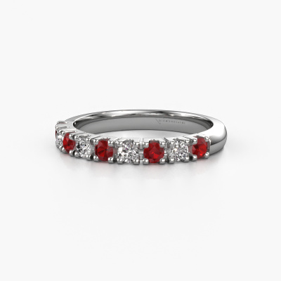 Dieser 9 Stone Ring wird Rianne 9 genannt. Diese Art von Ring wird als Memoire ring bezeichnet, da seine Edelsteine in einer durchgehenden Linie angeordnet sind. Dadurch kann er einfach mit anderen Ringen kombiniert werden. Das Band dieses Platin Ring ist in einer Kombination aus Rubin und Diamant besetzt. Sie können ganz einfach online die Kombination auswählen, die Sie bevorzugen. Wie Sie sehen, wird bei diesem Platin Memoire Ring mehre Rubin gesetzt. Der Memoire ring steht für Zusammenwirken. Und genau das tun diese Edelsteine, zusammenwirken. Zusammen geben sie dem Band eines klassische Ring einen schönen Effekt! So ein bedeutungsvoller Ring, finden Sie nicht auch? Alle von uns ausgesuchten Rubin werden von unserem erfahrenen Goldschiede in Handarbeit eingefasst. Das ist eine präzise Aufgabe, die nur durch die Kombination von purer Handwerkskunst und dem Einsatz neuester Techniken erfolgreich durchgeführt werden kann, um eine optimale Wirkung zu erzielen. Um eine perfekte Lichtreflexion zu erzeugen, müssen alle Edelsteine auf die gleiche Weise perfekt ausgerichtet sein. Während der Fertigung wird der Goldschmied Meister daher ständig die Lichtreflexion überwachen, um zu gewährleisten, dass die Rubin perfekt ausgerichtet sind. Das erfordert eine geschickte Hand und viel Geduld, aber dann wird das Endprodukt zu einem echten Kunstwerk. Und genau das ist unsere Mission!Haben Sie ein bestimmtes Budget? Sie können uns gerne kontaktieren, damit wir Ihre Optionen besprechen können. Wir bieten unsere Ringe zum garantiert besten Preis, denn wir fertigen sie auf Bestellung. Solche Preise finden Sie nirgendwo anders!