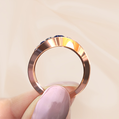 Dieser Ring namens Sigrid 2 besteht aus 14 Karat Roségold und ist mit Saphir besetzt. Sind Sie auf der Suche nach einem einzigartigen Roségold Ring mit moderner Note? Dann könnte dieser Ring zu Ihnen passen. Einfach nach Ihren Wünschen anpassen. Er passt zur zeitgenössischen, modernen Frau. Dieser 9 Stone Ring ist mit wunderschönen Saphir besetzt. Er wurde sorgfältig ausgewählt. Weil Ihr Ring mit nichts als dem atemberaubendsten Edelstein gekrönt werden soll. Unser erfahrener Goldschiede kreiert Ihren Ring in unserem eigenen Studio, wo der Saphir mit großer Sorgfalt gesetzt wird. Der Ring wird dann perfekt poliert, um einen atemberaubenden Ring zu erhalten. Durch die Kombination modernster Technik mit uralter Handwerkskunst können wir alle Ringe in unserem eigenen Studio anfertigen. Jedes Schmuckstück wird auf Anfrage gefertigt. Das ist vorteilhaft, weil wir Ihnen dadurch einen Preis anbieten können, den Sie nirgendwo anders finden.Unser Team von talentierten, leidenschaftlichen Designern fügt unserer Online-Kollektion täglich neue Ring-Designs hinzu. Unser Ziel dabei ist es, Ihnen eine große Vielfalt an Schmuckstücken anbieten zu können. Bitte zögern Sie nicht, ein Angebot anzufordern, wenn Sie spezielle Wünsche für Ihren Ring haben. Wir garantieren Ihnen ein Angebot, das Sie nicht ablehnen können.Um es einfacher zu machen, bieten wir eine kostenlose 30-tägige Rücksendung.