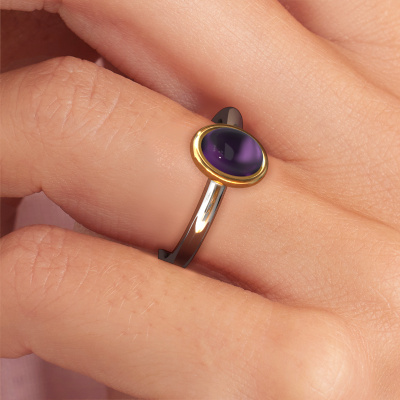 In diesem Foto ist der Weißgold Blossom OVL 2 Ring mit einem 7x5 mm oval cabochon Amethyst besetzt. Cabochon bedeutet, dass ein Amethyst zuerst geformt, nicht facettiert wird. Nämlich in eine bestimmte Form wie einen Tropfen, ein Herz oder ein oval cabochon. Anschließend wird er poliert, bis der Edelstein eine Runde Oberfläche hat. Ein Cabochon-Edelstein ist ein atemberaubender, nobler Blickfang, der perfekt zu einem zeitgenössischen wie auch zu einem Vintage-Stil passt. Unsere erfahrenen Goldschmiede formen den modische Ring bis zur Perfektion und machen ihn einzigartig. Der Cabochon Amethyst ist so gefasst, dass seine einzigartigen Qualitäten verstärkt werden. Der modische Blossom OVL 2 Ring, wie hier abgebildet, kann ganz nach Ihren Wünschen gestaltet werden. Unser Online-Tool bietet viele verschiedene Möglichkeiten. Bitte kontaktieren Sie uns, wenn Sie Änderungen an Ihrem Blossom OVL 2 Ring wünschen, die in unserem Online-Tool nicht verfügbar sind.Nach Erhalt Ihrer Bestellung beginnen unsere Goldschmiede mit Leidenschaft den kreativen Prozess und fertigen Ihren Ring in unserem eigenen Studio. Da wir keine großen Lager haben, werden diese Kosten nicht an Sie weitergegeben. Unsere Preisgestaltung ist der Beweis dafür! Wir bieten Schmuck zum niedrigsten Preis, garantiert.Um es einfacher zu machen, bieten wir eine kostenlose 30-tägige Rücksendung.