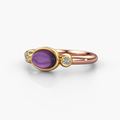 In diesem Foto ist der Roségold Liane Ring mit einem 7x5 mm oval cabochon Amethyst besetzt. Cabochon bedeutet, dass ein Amethyst zuerst geformt, nicht facettiert wird. Nämlich in eine bestimmte Form wie einen Tropfen, ein Herz oder ein oval cabochon. Anschließend wird er poliert, bis der Edelstein eine Runde Oberfläche hat. Ein Cabochon-Edelstein ist ein atemberaubender, nobler Blickfang, der perfekt zu einem zeitgenössischen wie auch zu einem Vintage-Stil passt. Unsere erfahrenen Goldschmiede formen den zierliche Ring bis zur Perfektion und machen ihn einzigartig. Der Cabochon Amethyst ist so gefasst, dass seine einzigartigen Qualitäten verstärkt werden. Unsere Goldschmiede kreieren Ihren individuellen Ring leidenschaftlich, mit größter Sorgfalt und nach Ihren Wünschen. Das Roségold Ring, wie hier abgebildet, kann mit unserem Online-Tool individuell angepasst werden. Bitte fragen Sie unsere Schmuckdesigner um Hilfe, wenn Sie Änderungen wünsche, die in unserem Online-Tool nicht verfügbar sind. Gerne beantworten wir Ihnen alle offenen Fragen.Durch die Kombination modernster Technik mit uralter Handwerkskunst können wir alle Ringe in unserem eigenen Studio anfertigen. Jedes Schmuckstück wird auf Anfrage gefertigt. Das ist vorteilhaft, weil wir Ihnen dadurch einen Preis anbieten können, den Sie nirgendwo anders finden.Um es einfacher zu machen, bieten wir eine kostenlose 30-tägige Rücksendung.