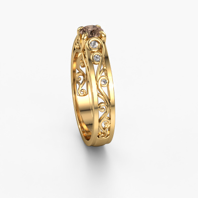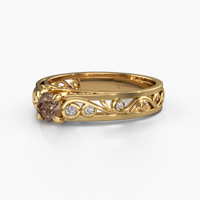 Haben Sie einen Vintage-Fetisch? Dann passt dieser Gold Ring perfekt zu Ihnen. Er hat ein zeitgemäßes Design, basierend auf klassischen Designs. Ein leicht romantisches, außergewöhnliches Design! Sogar noch mehr, wenn Sie ihn nach Ihren Wünschen anpassen. Dieser besondere Quinty Ring ist mit exquisiten Braune Diamanten besetzt. Wie Sie sehen können, können Sie einfach einen Edelstein wählen, der zu Ihrem Stil passt. Jeder Edelstein wird sorgfältig von unseren Händlern ausgewählt, die auf der ganzen Welt verteilt sind. Nichts als die besten Edelsteine für unseren erfahrenen Goldschiede! Schließlich ist es seine Krönung!Der besondere Quinty Ring, wie hier abgebildet, kann ganz nach Ihren Wünschen gestaltet werden. Unser Online-Tool bietet viele verschiedene Möglichkeiten. Bitte kontaktieren Sie uns, wenn Sie Änderungen an Ihrem Quinty Ring wünschen, die in unserem Online-Tool nicht verfügbar sind.Durch die Kombination modernster Technik mit uralter Handwerkskunst können wir alle Ringe in unserem eigenen Studio anfertigen. Jedes Schmuckstück wird auf Anfrage gefertigt. Das ist vorteilhaft, weil wir Ihnen dadurch einen Preis anbieten können, den Sie nirgendwo anders finden.Um es einfacher zu machen, bieten wir eine kostenlose 30-tägige Rücksendung.