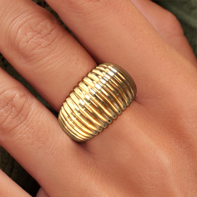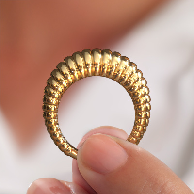 Was für ein unglaublich breite Ring! Dieser Ring wird Anneke 14 genannt. Ein Fantasie breite Gold Ring, der zur modernen, modebewussten Frau passt. Dieser Ring ist ein Beweis für unsere neue Art der Fertigung. Wir haben in unserem eigenen Studio einen Prozess entwickelt, in dem die alte wie auch die neue Art der Herstellung in perfekter Harmonie vereint sind. Wir machen ein detailliertes 3D-Design des gewünschten Ringes. Dann fertigt unser erfahrener Goldschiede Ihren Ring in Perfektion. Ein einzigartiger Ring, gestylt nach Ihren Wünschen. Unsere Goldschmiede kreieren Ihren individuellen Ring leidenschaftlich, mit größter Sorgfalt und nach Ihren Wünschen. Das Gold Ring, wie hier abgebildet, kann mit unserem Online-Tool individuell angepasst werden. Bitte fragen Sie unsere Schmuckdesigner um Hilfe, wenn Sie Änderungen wünsche, die in unserem Online-Tool nicht verfügbar sind. Gerne beantworten wir Ihnen alle offenen Fragen.Nachdem Sie Ihre Bestellung aufgegeben haben, beginnen unsere Goldschmiede mit dem kreativen Prozess der Herstellung Ihres Anneke 14 Ring. Wir haben keine Lager. Das ist vorteilhaft, da diese Kosten nicht an Sie weitergegeben werden. Daher sind wir in der Lage, Schmuck zu außergewöhnlich niedrigen Preisen anzubieten.Um es einfacher zu machen, bieten wir eine kostenlose 30-tägige Rücksendung.