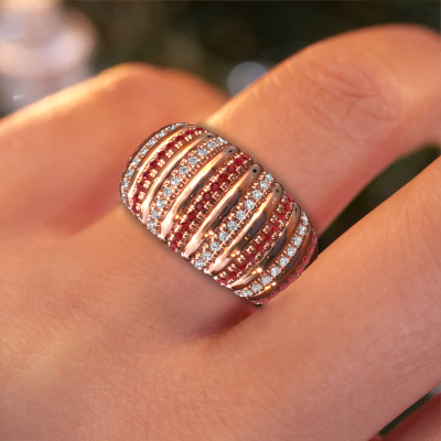 Das ist ein atemberaubender, breite Roségold Dawn 12mm Ring. Er ist mit Rubin besetzt. Ein Designer-Ring, passend für noble Frauen. Der Ring wurde von unseren eigenen Goldschmieden entworfen. In unserem Atelier verwenden wir eine Kombination aus den neuesten Techniken und traditioneller Handwerkskunst, sodass wir einen perfekt gestalteten Ring kreieren können. Unsere erfahrenen Goldschmiede streben nach Perfektion und werden nicht aufhören, bis ein perfekter Ring geschaffen ist, ein wahres Kunstwerk. Ein einzigartiger Ring, der zu Ihrem eigenen Stil passt. Der breite Dawn 12mm Ring, wie hier abgebildet, kann ganz nach Ihren Wünschen gestaltet werden. Unser Online-Tool bietet viele verschiedene Möglichkeiten. Bitte kontaktieren Sie uns, wenn Sie Änderungen an Ihrem Dawn 12mm Ring wünschen, die in unserem Online-Tool nicht verfügbar sind.Durch die Kombination modernster Technik mit uralter Handwerkskunst können wir alle Ringe in unserem eigenen Studio anfertigen. Jedes Schmuckstück wird auf Anfrage gefertigt. Das ist vorteilhaft, weil wir Ihnen dadurch einen Preis anbieten können, den Sie nirgendwo anders finden.Um es einfacher zu machen, bieten wir eine kostenlose 30-tägige Rücksendung.
