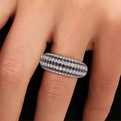 Dieser Ring mit Pavé-Fassung wird Lyndia genannt. Dieser Ring aus 14 Karat Gold ist komplett rund mit Saphir 0.8 mm besetzt. Das Band dieses Gold Ring ist mit Reihen von Saphir besetzt, die weder Anfang noch Ende zu haben scheinen. Unser Goldschiede wählt die Edelsteine sorgfältig aus und setzt sie mit höchster Präzision. Für maximalen Glanz müssen die Saphir perfekt ausgerichtet sein. Beim kunstvollen Fertigen und Polieren des Schmucks wird der Lichteinfall ständig überwacht, bis der Goldschmiedemeister mit dem Ergebnis zufrieden ist. Von Ihnen entworfen, speziell für Sie gefertigt!Wie gefällt Ihnen dieser exklusive Gold Ring? Passen Sie diesen Lyndia Ring einfach mit unserem Online-Tool an. Anschließend wird Ihr persönlicher, elegante Lyndia Ring in Handarbeit von unseren Goldschmieden angefertigt. Edelmetalle und Edelsteine können nach Ihren Wünschen angepasst werden. Haben Sie spezielle Wünsche, die in unserem Online-Tool nicht verfügbar sind? Setzen Sie sich mit uns in Verbindung. Wir passen Ihren persönlichen exklusive Ring nach Ihren Wünschen an.Nachdem Sie Ihre Bestellung aufgegeben haben, beginnen unsere Goldschmiede mit dem kreativen Prozess der Herstellung Ihres Lyndia Ring. Wir haben keine Lager. Das ist vorteilhaft, da diese Kosten nicht an Sie weitergegeben werden. Daher sind wir in der Lage, Schmuck zu außergewöhnlich niedrigen Preisen anzubieten.Um es einfacher zu machen, bieten wir eine kostenlose 30-tägige Rücksendung.