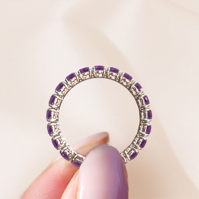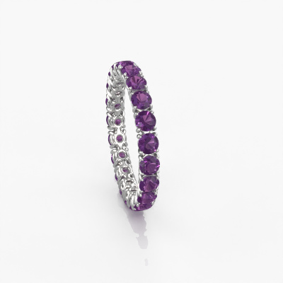 Das ist unser Vivienne 2.9-Ring. Dieser spezielle Typ wird als Eternity ring bezeichnet und ist mit einer durchgehenden Linie von identisch geschliffenen Edelsteinen besetzt. Er ist aus 14 Karat Weißgold und mit kleineren Amethyst 2.9 mm besetzt. Dieser Weißgold Eternity Ring ist eine wunderschöne und sinnvolle Möglichkeit, Ihrem Antrag eine besondere Note zu verleihen. Die herrlich gleichmäßig geformten Amethysten sind rund um den Ring eingefasst. Die identischen Amethysten werden sorgfältig ausgewählt, um dem Ring eine maximale Wirkung zu verleihen. Denken Sie daran, dass wir natürliche Ressourcen verwenden. Daher sind kleine Unterschiede zwischen den Steinen üblich. Der besondere Effekt wird durch die präzise Positionierung der Amethysten noch verstärkt. Dies erfordert äußerste Präzision und eine geschickte Hand. Für unsere erfahrenen Juweliere ist die pure Leidenschaft. Am Ende bekommen Sie einen Ring mit einer Reihe von Amethysten, die weder Anfang noch Ende zu haben scheinen. Das perfekte Symbol für Ihre Liebe zu ihr! Ist sie nicht eine Schönheit? Mit unserer modernen Technik können wir Schmuckstücke von höchster Qualität mit größter Sorgfalt für Sie entwerfen und anpassen. Unsere Ringe sind immer um 30 Prozent günstiger als bei anderen Juwelieren. Wir fertigen Ringe auf Bestellung, also müssen wir keine großen Lager unterhalten. Wenn Sie ein bestimmtes Budget haben, beraten wir Sie gerne entsprechend.Unsere Online-Kollektion wird täglich um neue Schmuckdesigns ergänzt. Unser Team von leidenschaftlichen Designern ist bemüht, außergewöhnliche und vielfältige Designs zu kreieren. Haben Sie einen Ring gesehen, der Ihnen gefällt? Setzen Sie sich mit uns in Verbindung. Basierend auf einem guten Preis/Leistungsverhältnis machen wir Ihnen ein Angebot, das Sie nicht ablehnen können!Um es einfacher zu machen, bieten wir eine kostenlose 30-tägige Rücksendung.