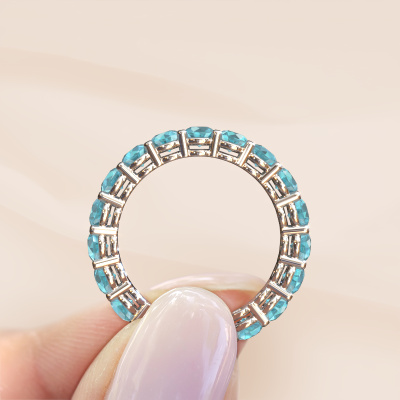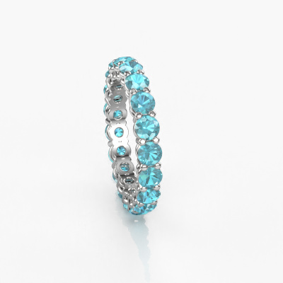 Das ist unser Michelle full 3.4-Ring. Dieser spezielle Typ wird als Eternity ring bezeichnet und ist mit einer durchgehenden Linie von identisch geschliffenen Edelsteinen besetzt. Er ist aus Platin und mit kleineren Blau Topas 3.4 mm besetzt. Dieser Platin Eternity Ring ist eine wunderschöne und sinnvolle Möglichkeit, Ihrem Antrag eine besondere Note zu verleihen. Die herrlich gleichmäßig geformten Blaue Topas sind rund um den Ring eingefasst. Die identischen Blaue Topas werden sorgfältig ausgewählt, um dem Ring eine maximale Wirkung zu verleihen. Denken Sie daran, dass wir natürliche Ressourcen verwenden. Daher sind kleine Unterschiede zwischen den Steinen üblich. Der besondere Effekt wird durch die präzise Positionierung der Blaue Topas noch verstärkt. Dies erfordert äußerste Präzision und eine geschickte Hand. Für unsere erfahrenen Juweliere ist die pure Leidenschaft. Am Ende bekommen Sie einen Vorsteckring mit einer Reihe von Blaue Topas, die weder Anfang noch Ende zu haben scheinen. Das perfekte Symbol für Ihre Liebe zu ihr! Ist sie nicht eine Schönheit? Durch die Kombination modernster Technik mit uralter Handwerkskunst können wir alle Ringe in unserem eigenen Studio anfertigen. Jedes Schmuckstück wird auf Anfrage gefertigt. Das ist vorteilhaft, weil wir Ihnen dadurch einen Preis anbieten können, den Sie nirgendwo anders finden.Unsere Online-Kollektion wird täglich um neue Schmuckdesigns ergänzt. Unser Team von leidenschaftlichen Designern ist bemüht, außergewöhnliche und vielfältige Designs zu kreieren. Haben Sie einen Ring gesehen, der Ihnen gefällt? Setzen Sie sich mit uns in Verbindung. Basierend auf einem guten Preis/Leistungsverhältnis machen wir Ihnen ein Angebot, das Sie nicht ablehnen können!Um es einfacher zu machen, bieten wir eine kostenlose 30-tägige Rücksendung.