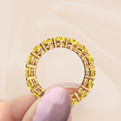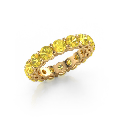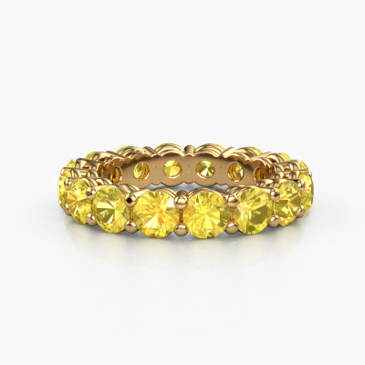 Das ist unser Michelle full 4.2-Ring. Dieser spezielle Typ wird als Eternity ring bezeichnet und ist mit einer durchgehenden Linie von identisch geschliffenen Edelsteinen besetzt. Er ist aus 14 Karat Gold und mit kleineren Gelb Saphir 4.2 mm besetzt. Dieser Gold Eternity Ring ist eine wunderschöne und sinnvolle Möglichkeit, Ihrem Antrag eine besondere Note zu verleihen. Die herrlich gleichmäßig geformten Gelb Saphir sind rund um den Ring eingefasst. Die identischen Gelb Saphir werden sorgfältig ausgewählt, um dem Ring eine maximale Wirkung zu verleihen. Denken Sie daran, dass wir natürliche Ressourcen verwenden. Daher sind kleine Unterschiede zwischen den Steinen üblich. Der besondere Effekt wird durch die präzise Positionierung der Gelb Saphir noch verstärkt. Dies erfordert äußerste Präzision und eine geschickte Hand. Für unsere erfahrenen Juweliere ist die pure Leidenschaft. Am Ende bekommen Sie einen Vorsteckring mit einer Reihe von Gelb Saphir, die weder Anfang noch Ende zu haben scheinen. Das perfekte Symbol für Ihre Liebe zu ihr! Ist sie nicht eine Schönheit? Nachdem Sie Ihre Bestellung aufgegeben haben, beginnen unsere Goldschmiede mit dem kreativen Prozess der Herstellung Ihres Michelle full 4.2 Ring. Wir haben keine Lager. Das ist vorteilhaft, da diese Kosten nicht an Sie weitergegeben werden. Daher sind wir in der Lage, Schmuck zu außergewöhnlich niedrigen Preisen anzubieten.Unsere Online-Kollektion wird täglich um neue Schmuckdesigns ergänzt. Unser Team von leidenschaftlichen Designern ist bemüht, außergewöhnliche und vielfältige Designs zu kreieren. Haben Sie einen Ring gesehen, der Ihnen gefällt? Setzen Sie sich mit uns in Verbindung. Basierend auf einem guten Preis/Leistungsverhältnis machen wir Ihnen ein Angebot, das Sie nicht ablehnen können!Um es einfacher zu machen, bieten wir eine kostenlose 30-tägige Rücksendung.