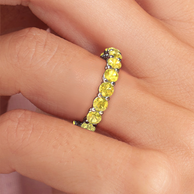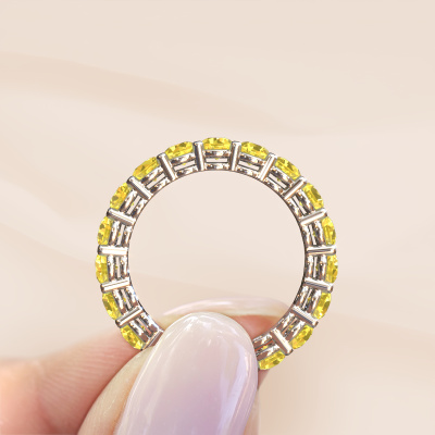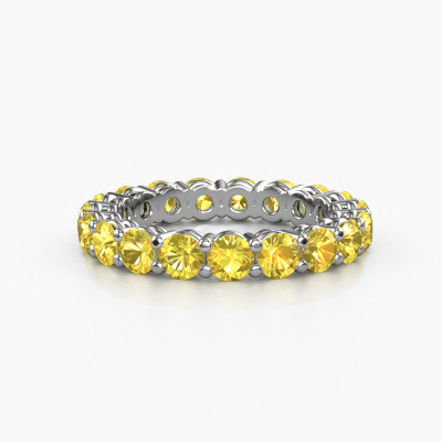 Das ist unser Michelle full 3.4-Ring. Dieser spezielle Typ wird als Eternity ring bezeichnet und ist mit einer durchgehenden Linie von identisch geschliffenen Edelsteinen besetzt. Er ist aus Platin und mit kleineren Gelb Saphir 3.4 mm besetzt. Dieser Platin Eternity Ring ist eine wunderschöne und sinnvolle Möglichkeit, Ihrem Antrag eine besondere Note zu verleihen. Die herrlich gleichmäßig geformten Gelb Saphir sind rund um den Ring eingefasst. Die identischen Gelb Saphir werden sorgfältig ausgewählt, um dem Ring eine maximale Wirkung zu verleihen. Denken Sie daran, dass wir natürliche Ressourcen verwenden. Daher sind kleine Unterschiede zwischen den Steinen üblich. Der besondere Effekt wird durch die präzise Positionierung der Gelb Saphir noch verstärkt. Dies erfordert äußerste Präzision und eine geschickte Hand. Für unsere erfahrenen Juweliere ist die pure Leidenschaft. Am Ende bekommen Sie einen Vorsteckring mit einer Reihe von Gelb Saphir, die weder Anfang noch Ende zu haben scheinen. Das perfekte Symbol für Ihre Liebe zu ihr! Ist sie nicht eine Schönheit? Durch die Kombination modernster Technik mit uralter Handwerkskunst können wir alle Ringe in unserem eigenen Studio anfertigen. Jedes Schmuckstück wird auf Anfrage gefertigt. Das ist vorteilhaft, weil wir Ihnen dadurch einen Preis anbieten können, den Sie nirgendwo anders finden.Unsere Online-Kollektion wird täglich um neue Schmuckdesigns ergänzt. Unser Team von leidenschaftlichen Designern ist bemüht, außergewöhnliche und vielfältige Designs zu kreieren. Haben Sie einen Ring gesehen, der Ihnen gefällt? Setzen Sie sich mit uns in Verbindung. Basierend auf einem guten Preis/Leistungsverhältnis machen wir Ihnen ein Angebot, das Sie nicht ablehnen können!Um es einfacher zu machen, bieten wir eine kostenlose 30-tägige Rücksendung.
