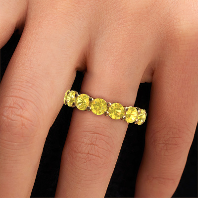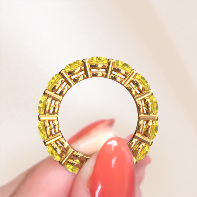 Das ist unser Michelle full 4.7-Ring. Dieser spezielle Typ wird als eternity Ring bezeichnet und ist mit einer durchgehenden Linie von identisch geschliffenen Edelsteinen besetzt. Er ist aus 14 Karat Gold und mit kleineren 4.7 mm Gelb Saphir besetzt. Die erstaunlichen Gelb Saphir sind identisch in der Größe und im Ringband platziert. Unsere Gelb Saphir werden sorgfältig ausgewählt, damit sie identisch sind und somit das beste Ergebnis erzielen. Um das beste Ergebnis zu erzielen, positioniert unser Juwelier alle Gelb Saphir von Hand und mit größter Sorgfalt. Unsere Juweliere haben nur ein Ziel, nämlich den perfekten Ring zu kreieren. Deshalb lieben wir, was wir tun. Am Ende bekommen Sie einen atemberaubenden, exklusive Gold Vorsteckring mit einer Reihe von Gelb Saphir, die weder Anfang noch Ende zu haben scheinen. Das perfekte Symbol für Ihre unsterbliche Liebe zu ihr! Ist sie nicht eine Schönheit? Da wir unsere eigenen Ringe entwerfen und liefern, können wir Ihnen einen Ring zu einem Preis anbieten, den Sie nirgendwo anders finden. Ein Ring wird auf Bestellung angefertigt, wodurch kein überschüssiges Material anfällt. So können wir Ihnen ein gutes Angebot zum besten Preis machen. Wir verstehen, dass es sich riskant anfühlt, Ihren Ring online zu kaufen. Jedoch helfen wir Ihnen gerne beim Designprozess unter Berücksichtigung Ihres Budgets.Unser Team von talentierten, leidenschaftlichen Designern fügt unserer Online-Kollektion täglich neue Ring-Designs hinzu. Unser Ziel dabei ist es, Ihnen eine große Vielfalt an Schmuckstücken anbieten zu können. Bitte zögern Sie nicht, ein Angebot anzufordern, wenn Sie spezielle Wünsche für Ihren Ring haben. Wir garantieren Ihnen ein Angebot, das Sie nicht ablehnen können.Um es einfacher zu machen, bieten wir eine kostenlose 30-tägige Rücksendung.