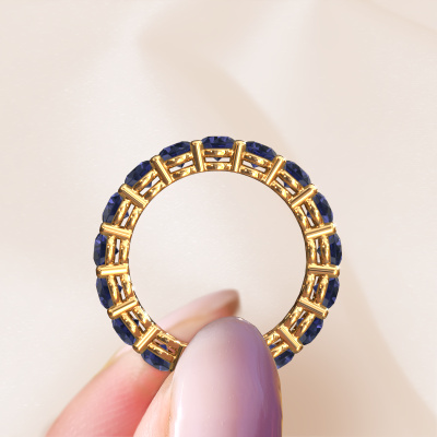 Das ist unser Michelle full 3.7-Ring. Dieser spezielle Typ wird als eternity Ring bezeichnet und ist mit einer durchgehenden Linie von identisch geschliffenen Edelsteinen besetzt. Er ist aus 14 Karat Gold und mit kleineren 3.7 mm Saphir besetzt. Die erstaunlichen Saphir sind identisch in der Größe und im Ringband platziert. Unsere Saphir werden sorgfältig ausgewählt, damit sie identisch sind und somit das beste Ergebnis erzielen. Um das beste Ergebnis zu erzielen, positioniert unser Juwelier alle Saphir von Hand und mit größter Sorgfalt. Unsere Juweliere haben nur ein Ziel, nämlich den perfekten Ring zu kreieren. Deshalb lieben wir, was wir tun. Am Ende bekommen Sie einen atemberaubenden, moderne Gold Vorsteckring mit einer Reihe von Saphir, die weder Anfang noch Ende zu haben scheinen. Das perfekte Symbol für Ihre unsterbliche Liebe zu ihr! Ist sie nicht eine Schönheit? Da wir unsere eigenen Ringe entwerfen und liefern, können wir Ihnen einen Ring zu einem Preis anbieten, den Sie nirgendwo anders finden. Ein Ring wird auf Bestellung angefertigt, wodurch kein überschüssiges Material anfällt. So können wir Ihnen ein gutes Angebot zum besten Preis machen. Wir verstehen, dass es sich riskant anfühlt, Ihren Ring online zu kaufen. Jedoch helfen wir Ihnen gerne beim Designprozess unter Berücksichtigung Ihres Budgets.Unser Team von talentierten, leidenschaftlichen Designern fügt unserer Online-Kollektion täglich neue Ringe-Designs hinzu. Unser Ziel dabei ist es, Ihnen eine große Vielfalt an Schmuckstücken anbieten zu können. Bitte zögern Sie nicht, ein Angebot anzufordern, wenn Sie spezielle Wünsche für Ihren Ring haben. Wir garantieren Ihnen ein Angebot, das Sie nicht ablehnen können.Um es einfacher zu machen, bieten wir eine kostenlose 30-tägige Rücksendung.
