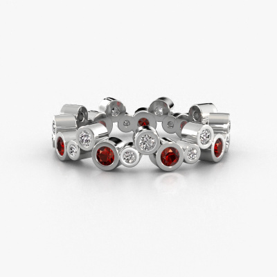 Das ist unser Tessa-Ring. Dieser spezielle Typ wird als Eternity ring bezeichnet und ist mit einer durchgehenden Linie von identisch geschliffenen Edelsteinen besetzt. Er ist aus 14 Karat Weißgold und mit kleineren Granat 2.5 mm besetzt. Dieser Weißgold Eternity Ring ist eine wunderschöne und sinnvolle Möglichkeit, Ihrem Antrag eine besondere Note zu verleihen. Die herrlich gleichmäßig geformten Granat sind rund um den Ring eingefasst. Die identischen Granat werden sorgfältig ausgewählt, um dem Ring eine maximale Wirkung zu verleihen. Denken Sie daran, dass wir natürliche Ressourcen verwenden. Daher sind kleine Unterschiede zwischen den Steinen üblich. Der besondere Effekt wird durch die präzise Positionierung der Granat noch verstärkt. Dies erfordert äußerste Präzision und eine geschickte Hand. Für unsere erfahrenen Juweliere ist die pure Leidenschaft. Am Ende bekommen Sie einen Ring mit einer Reihe von Granat, die weder Anfang noch Ende zu haben scheinen. Das perfekte Symbol für Ihre Liebe zu ihr! Ist sie nicht eine Schönheit? Mit unserer modernen Technik können wir Schmuckstücke von höchster Qualität mit größter Sorgfalt für Sie entwerfen und anpassen. Unsere Ringe sind immer um 30 Prozent günstiger als bei anderen Juwelieren. Wir fertigen Ringe auf Bestellung, also müssen wir keine großen Lager unterhalten. Wenn Sie ein bestimmtes Budget haben, beraten wir Sie gerne entsprechend.Unsere talentierten, leidenschaftlichen Designer fügen unserer Online-Kollektion täglich neue Designs hinzu. Zusammen versuchen sie, eine vielfältige Kollektion feinster Schmuckstücke zu erstellen. Wenn Sie es vorziehen, einen Ring nach Ihrem eigenen Entwurf zu machen, können Sie gerne ein Angebot anfordern. Wir machen Ihnen ein großartiges Angebot, basierend auf Qualität und Preis.Um es einfacher zu machen, bieten wir eine kostenlose 30-tägige Rücksendung.