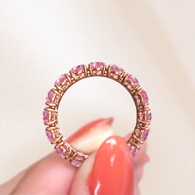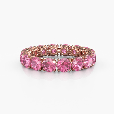 Dieser Vivienne 4.0 Vorsteckring in 14 Karat Roségold ist mit Pink Saphir besetzt. Dieser Roségold Vivienne 4.0 Ring ist die perfekte Ergänzung zu Ihrer Ring-Kollektion! Wie der Name schon sagt, ist es ein Ring, der an einem Finger mit einem anderen Ring kombiniert werden kann. Das gibt Ihnen die Möglichkeit, Ihren eigenen Stil zu schaffen. Ein Vorsteckring repräsentiert normalerweise eine bestimmte Erinnerung an jemand Besonderen, oder an einen denkwürdigen Moment. Es ist üblich, einen Vorsteckring, welcher ein Jubiläum darstellt, mit einem Trauring zu kombinieren. Aber dieser eternity Ring, kombiniert mit Ihren anderen Ringen, ist auch ein klassisches Modeobjekt. Ein individueller, moderne eternity Vorsteckring ist das perfekte Geschenk! Unser Team von leidenschaftlichen Goldschmieden fügt täglich neue exquisite Designs hinzu. Und jedes Design kann angepasst werden. Passen Sie zum Beispiel einfach die Edelmetalle und die Farbe der verwendeten Edelsteine an. Das macht Ihr Design des moderne Vivienne 4.0 Vorsteckring wirklich einzigartig!Da wir unsere eigenen Ringe entwerfen und liefern, können wir Ihnen einen Ring zu einem Preis anbieten, den Sie nirgendwo anders finden. Ein Ring wird auf Bestellung angefertigt, wodurch kein überschüssiges Material anfällt. So können wir Ihnen ein gutes Angebot zum besten Preis machen. Wir verstehen, dass es sich riskant anfühlt, Ihren Ring online zu kaufen. Jedoch helfen wir Ihnen gerne beim Designprozess unter Berücksichtigung Ihres Budgets.Um es einfacher zu machen, bieten wir eine kostenlose 30-tägige Rücksendung.