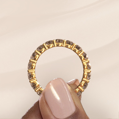 Das ist unser Heddy rnd 3.4-Ring. Dieser spezielle Typ wird als eternity Ring bezeichnet und ist mit einer durchgehenden Linie von identisch geschliffenen Edelsteinen besetzt. Er ist aus 14 Karat Gold und mit kleineren 0.15 crt Braune Diamanten besetzt. Die erstaunlichen Braune Diamanten sind identisch in der Größe und im Ringband platziert. Unsere Braune Diamanten werden sorgfältig ausgewählt, damit sie identisch sind und somit das beste Ergebnis erzielen. Um das beste Ergebnis zu erzielen, positioniert unser Juwelier alle Braune Diamanten von Hand und mit größter Sorgfalt. Unsere Juweliere haben nur ein Ziel, nämlich den perfekten Ring zu kreieren. Deshalb lieben wir, was wir tun. Am Ende bekommen Sie einen atemberaubenden, moderne Gold Ring mit einer Reihe von Braune Diamanten, die weder Anfang noch Ende zu haben scheinen. Das perfekte Symbol für Ihre unsterbliche Liebe zu ihr! Ist sie nicht eine Schönheit? Nach Erhalt Ihrer Bestellung beginnen unsere Goldschmiede mit Leidenschaft den kreativen Prozess und fertigen Ihren Ring in unserem eigenen Studio. Da wir keine großen Lager haben, werden diese Kosten nicht an Sie weitergegeben. Unsere Preisgestaltung ist der Beweis dafür! Wir bieten Schmuck zum niedrigsten Preis, garantiert.Unsere talentierten, leidenschaftlichen Designer fügen unserer Online-Kollektion täglich neue Designs hinzu. Zusammen versuchen sie, eine vielfältige Kollektion feinster Schmuckstücke zu erstellen. Wenn Sie es vorziehen, einen Ring nach Ihrem eigenen Entwurf zu machen, können Sie gerne ein Angebot anfordern. Wir machen Ihnen ein großartiges Angebot, basierend auf Qualität und Preis.Um es einfacher zu machen, bieten wir eine kostenlose 30-tägige Rücksendung.